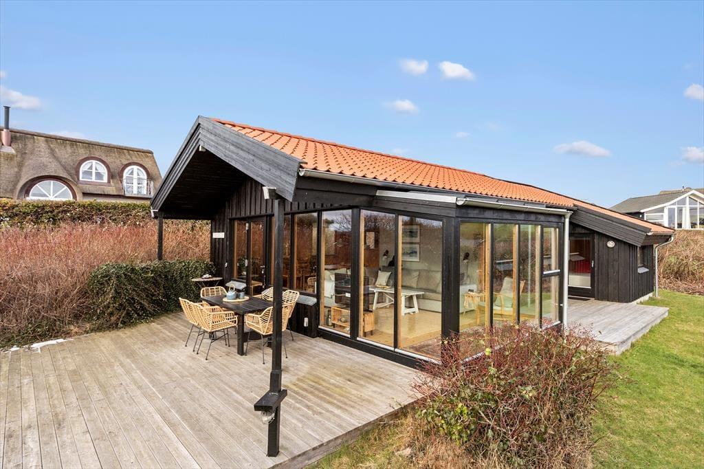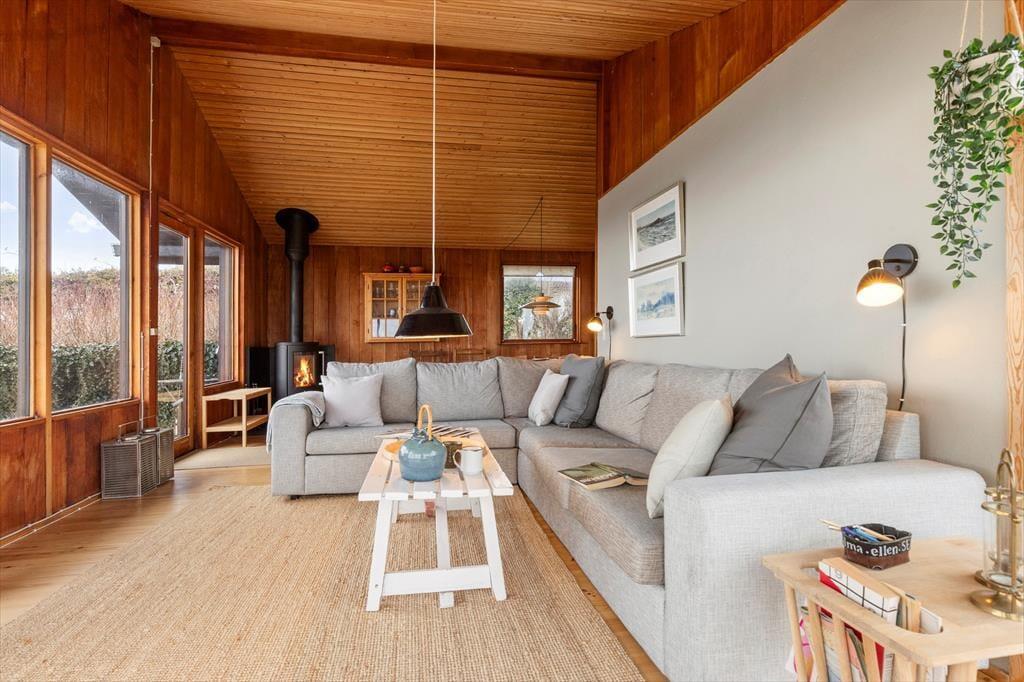 Hyggeligt sommerhus ved Egsmark Strand med brændeovn, internet, og tæt på strand og indkøb.