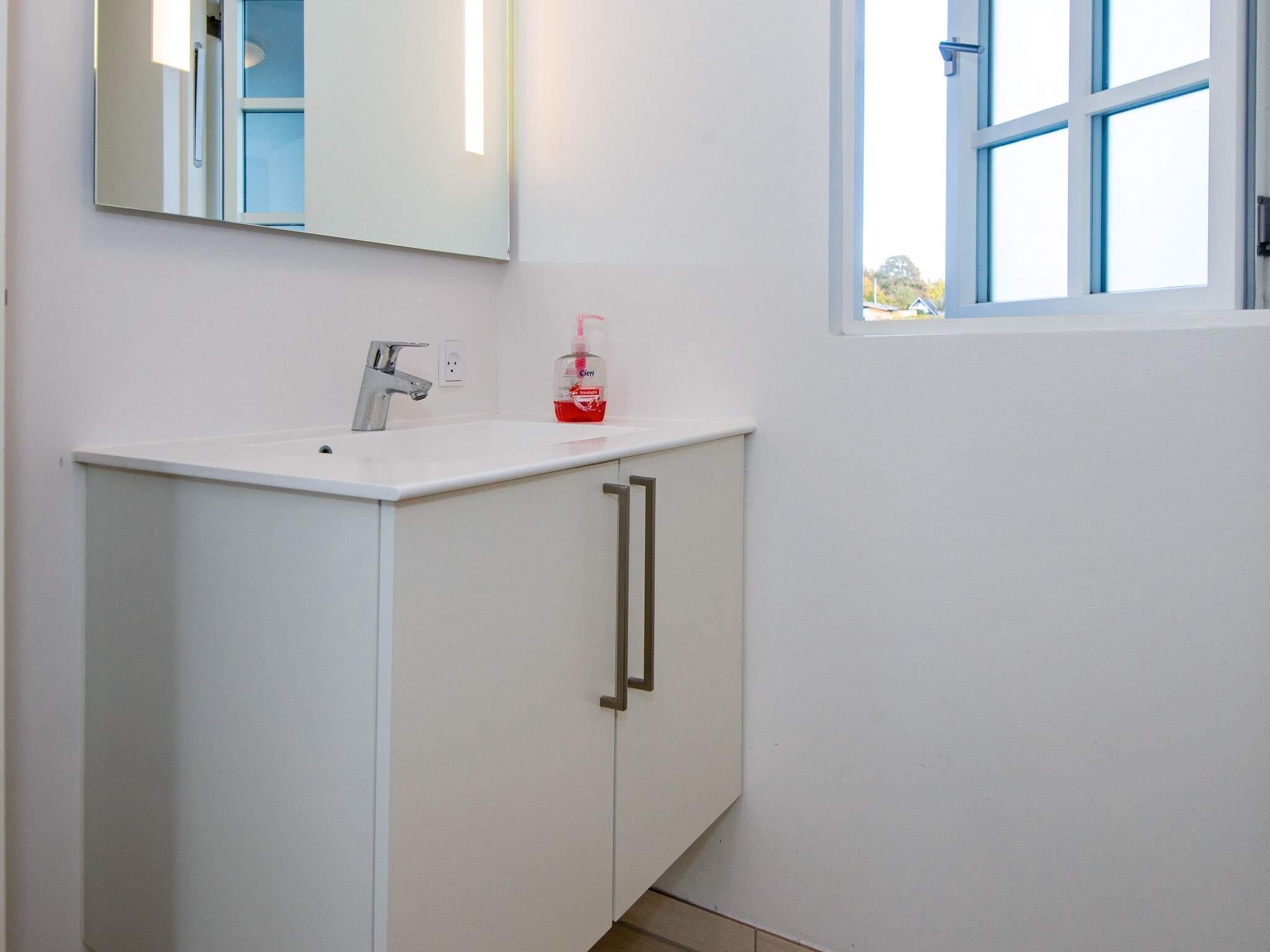 Sommerhuset har 24 sovepladser fordelt på 3 soveafdelinger med hver 3 dobbeltværelser og et badeværelse, og det er derfor både komfortabelt og nemt for flere familier at holde ferie under samme tag. De sidste 4 sovepladser finder I på husets hems (bedst til børn). I alt har sommerhuset 4 badeværelser og et enkelt toilet uden bad.