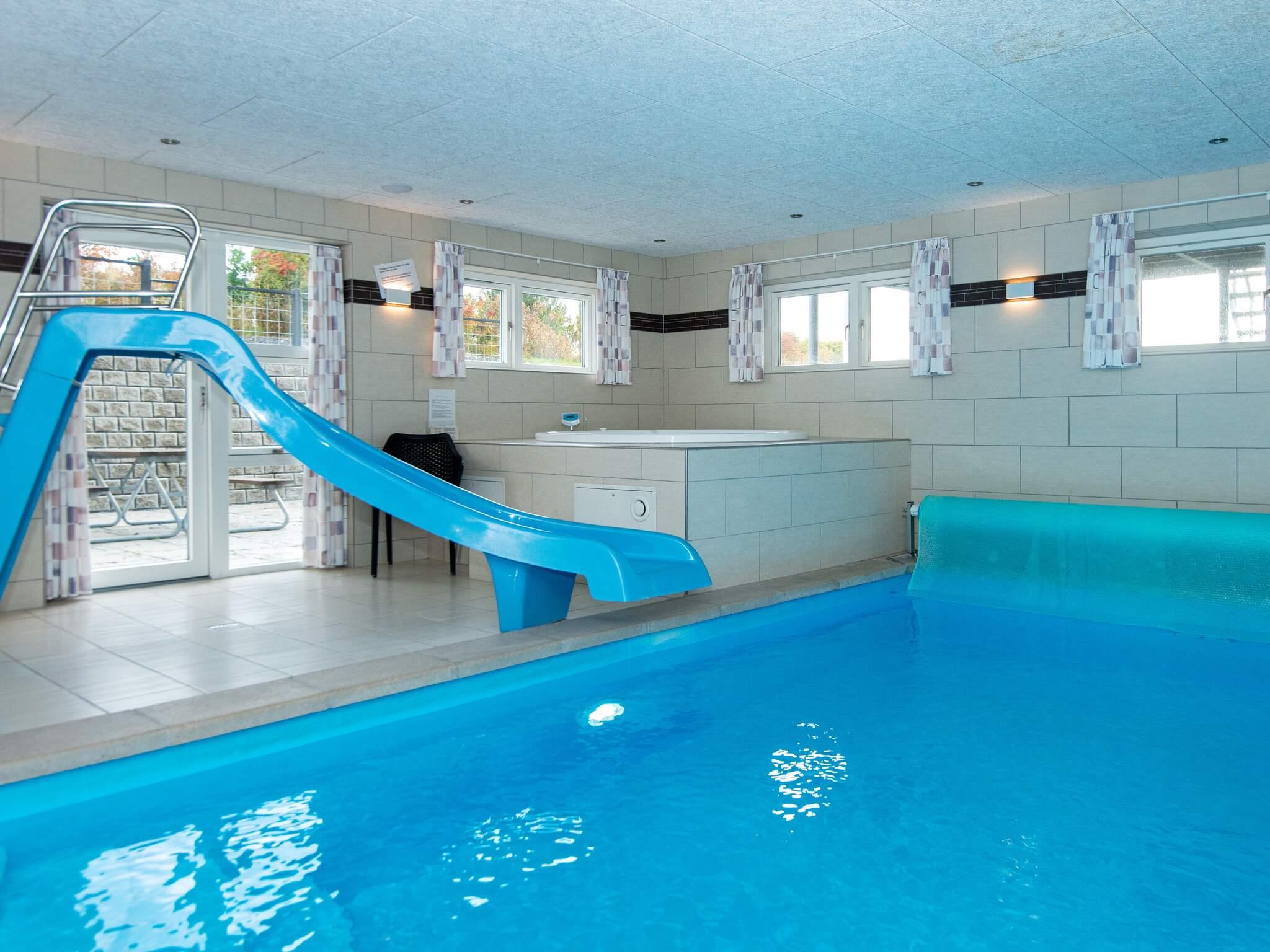 I kælderen er der 20 m² stor swimmingpool med vandrutsjebane, modstrømsanlæg og romersk trappe, spabad til 6 personer og en flot sauna i wellness-afdelingen. I det store aktivitetsrum er der to forskellige afdelinger med aktiviteter: En afdeling med bordfodbold, bordtennis, PlayStation 4 og Nintendo Wii og en afdeling med billardbord og dart.