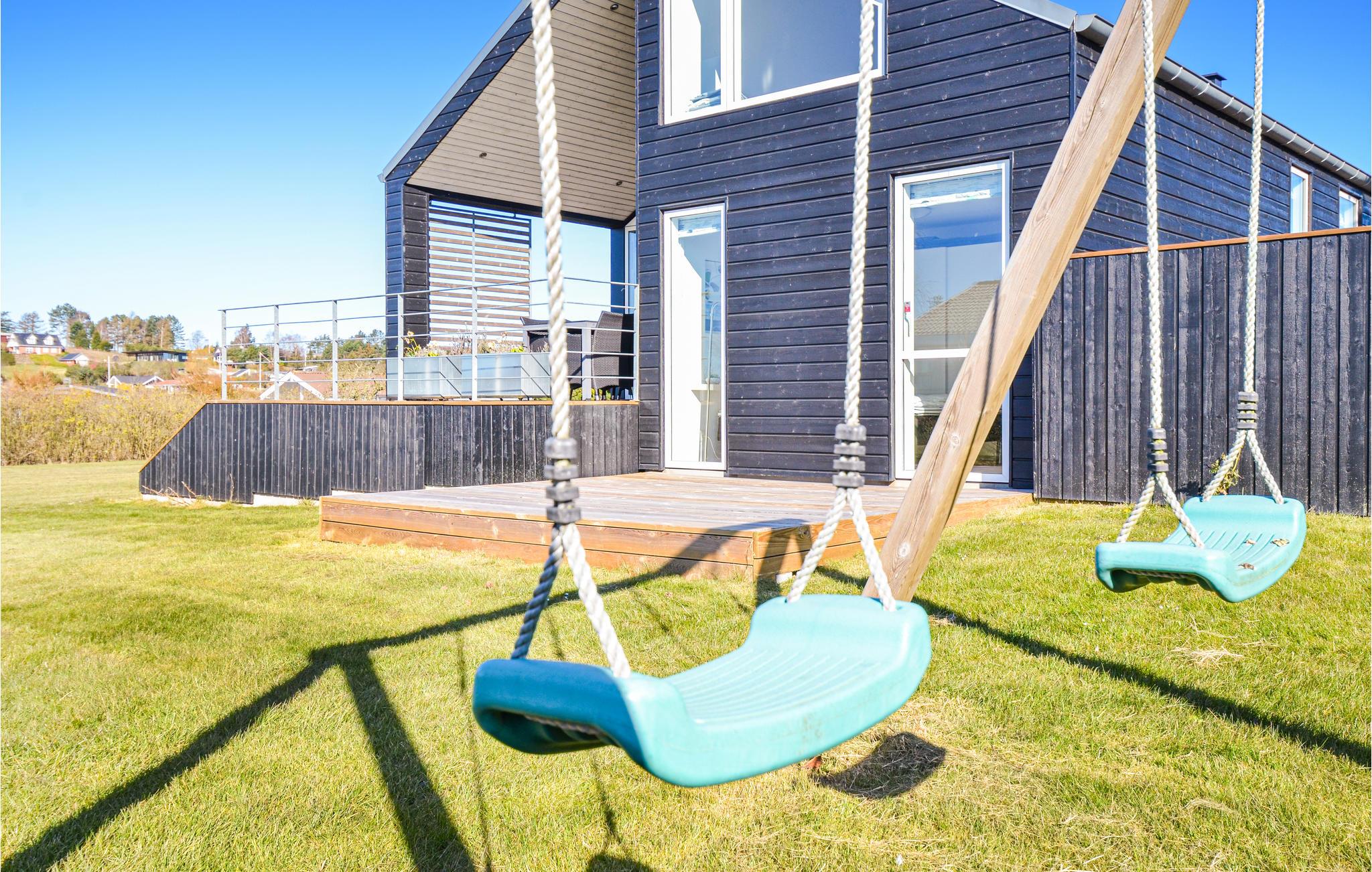 Moderne sommerhus nær Ebeltoft Strand med stor terrasse og aktiviteter for hele familien.