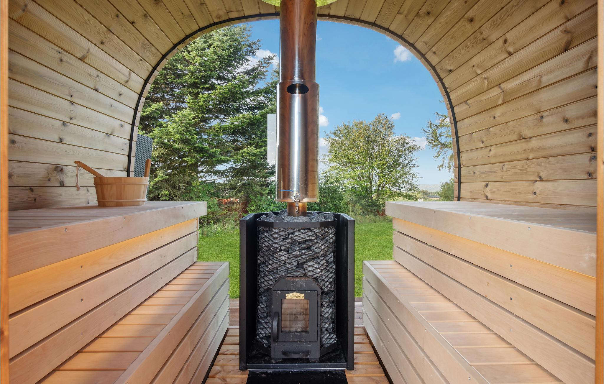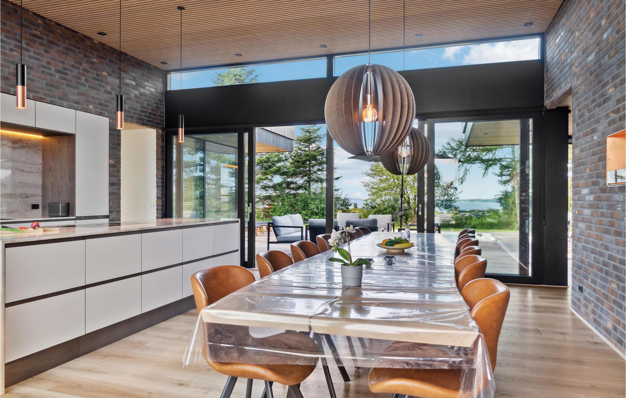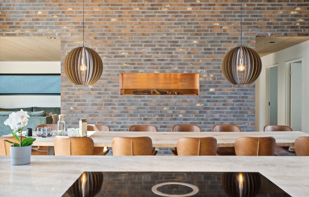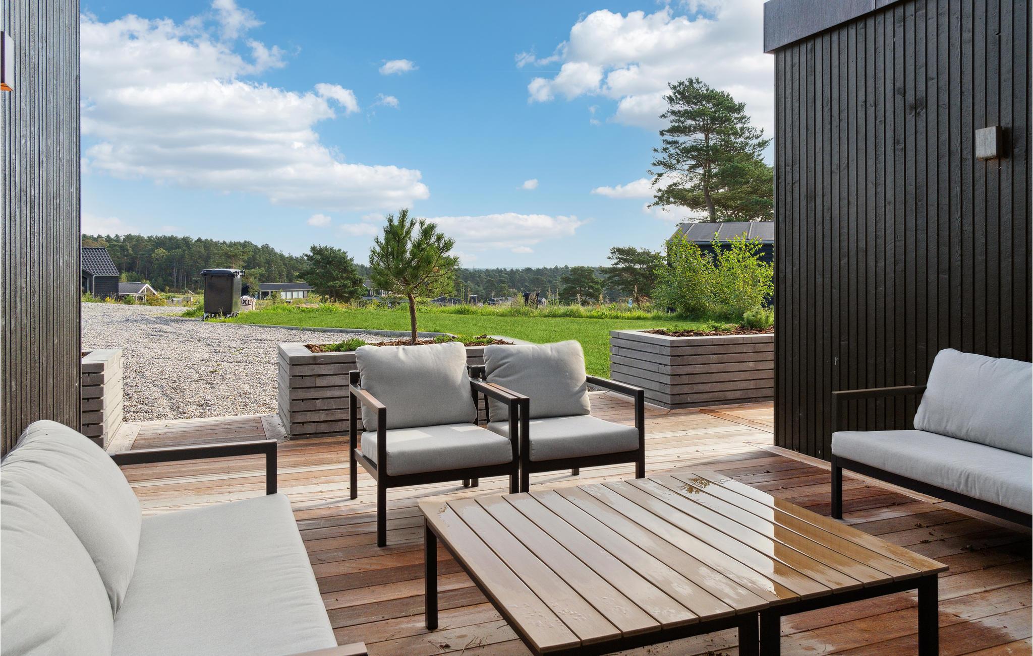 I denne arkitektoniske moderne perle harmonerer originalitet, nordisk æstetik og funktionalitet ned til mindste detalje. Huset fortryller med en yderst smagfuld forening af skandinavisk stil og moderne design, et højt niveau af komfort og en drømmeagtig beliggenhed med udsigt over havet. En ideel ferieoase til en fornøjelig familiesammenkomst! Se frem til fælles måltider ved det lange spisebord. Hvem mon dækker bord, og hvem laver mad i det strømlinede grebløse køkken? Efter en begivenhedsrig dag med mange aktiviteter venter en afslappende aften i de indbydende sofaer eller på terrassen, hvor I på varme dage også kan nyde alle jeres måltider. Nyd solen på den store terrasse og slap af i den skønne pool. Den mindre terrasse indbyder til aftenhygge eller kortspil med forfriskninger og snacks. Havet ligger i gåafstand fra huset.