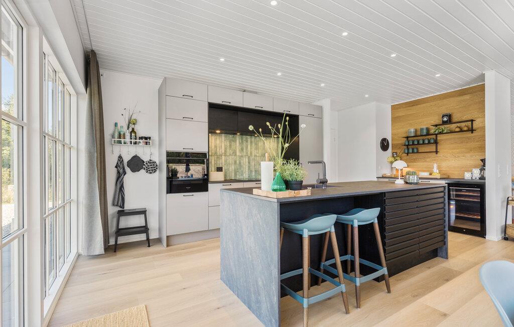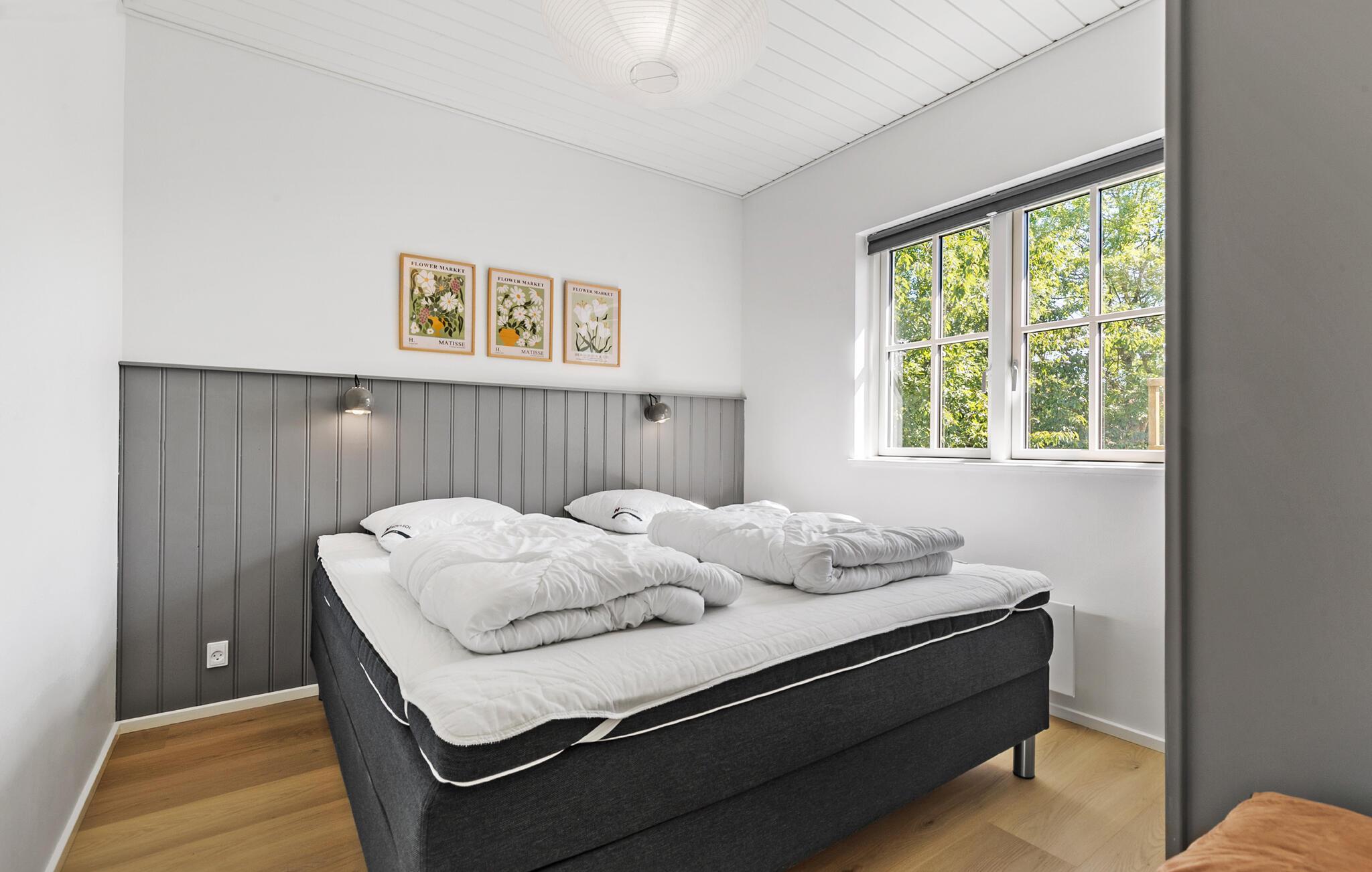 Nyd en stilfuld ferie i et træhus tæt på stranden med wellness, legeplads og moderne faciliteter i Egsmark Strand.
