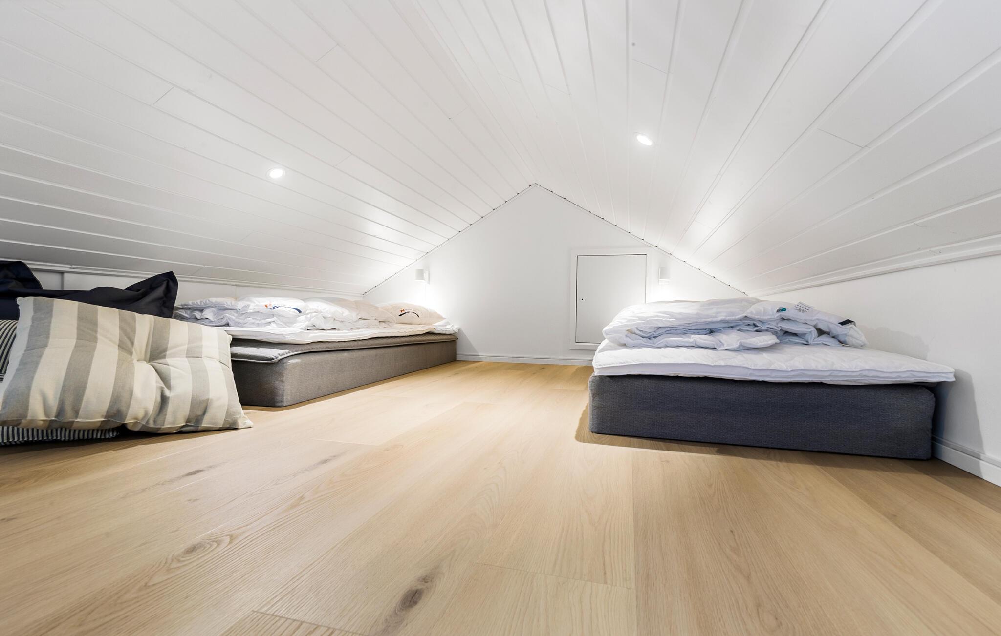 Træd ud på terrassen ved de første solstråler og nyd udsigten over den store, grønne have. For de små er der et legehus, en rutsjebane og gynger. På kølige dage kan I slappe af i den beroligende varme fra det finske træbadekar. Tænd op i grillen og find sammen til en hyggelig aften, når stjernerne begynder at blinke i skumringen.