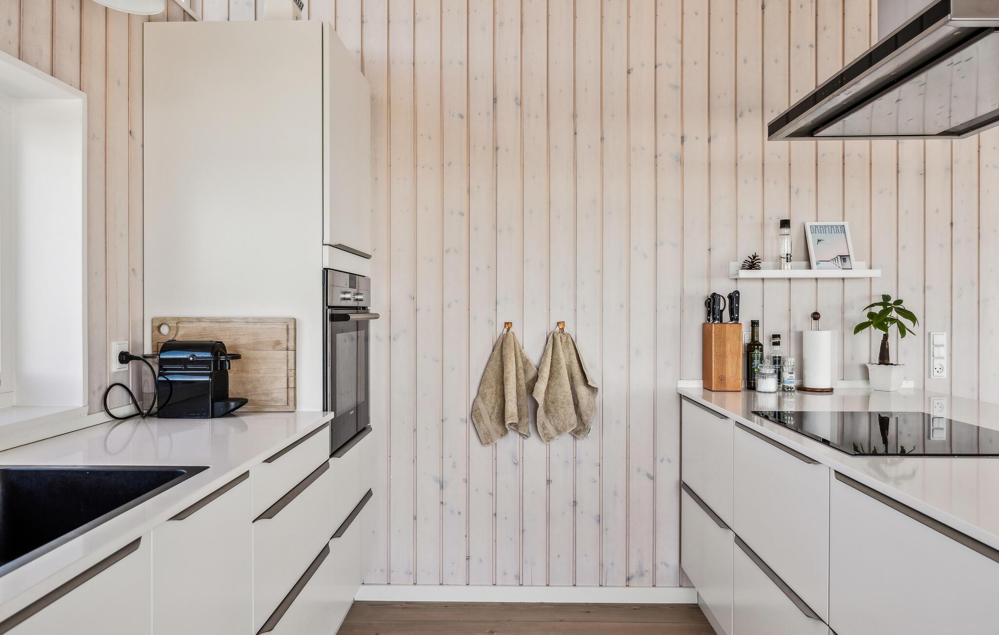 Velkommen til dette komfortable og smagfulde feriehus, hvor store vinduer giver masser af naturligt lys og en uforglemmelig udsigt over det maleriske landskab og det nærliggende hav. Planlæg dagens aktiviteter rundt om spisebordet, nyd afslappende øjeblikke i spabadet og lyt til den hyggelige knitren fra brændeovnen, mens I slapper af i den hyggelige stue.