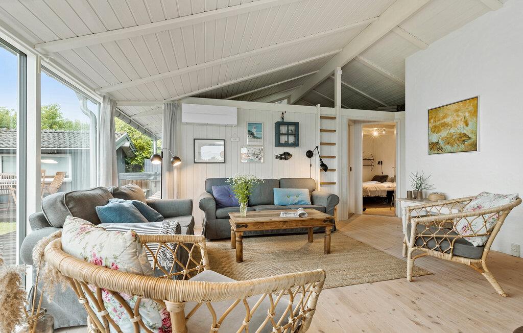 Der er noget helt særligt over dette sommerhus på Egsmark Strand, hvor I kan se frem til en ferie med fuld idyl på Djursland. Kom ind og lad jer fortrylle af den hyggelige atmosfære i en bolig, der emmer af feriestemning. Den smagfulde indretning og de lyse rum gør, at skuldrene helt automatisk sænker sig. Begynd dagene med morgenmad på den store terrasse, mens I nyder den betagende havudsigt. Bagefter kan I finde jer til rette i den hyggelige stue foran brændeovnen og slappe af med en god bog.
