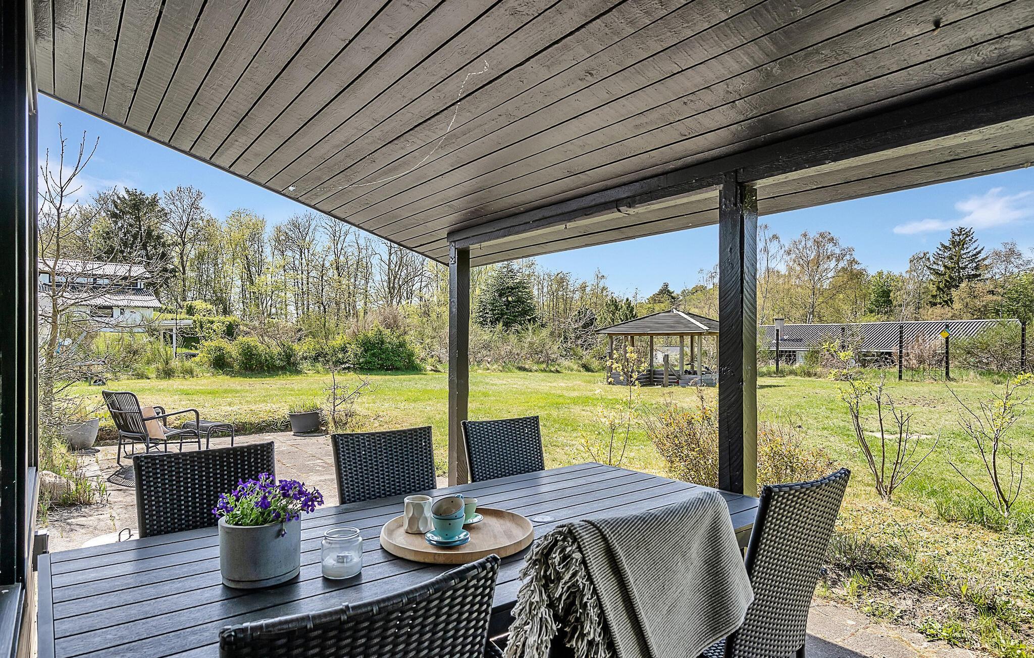 Begynd dagene med morgenmad på den overdækkede terrasse, mens I lader blikket vandre over naturgrunden. Slap af her i fulde drag og nyd jeres middag udenfor i det milde lys. Haven byder på masser af plads til hvile, leg og motion. En overdækket pavillon i det bagerste område skaber ekstra plads til afslappende timer udendørs.