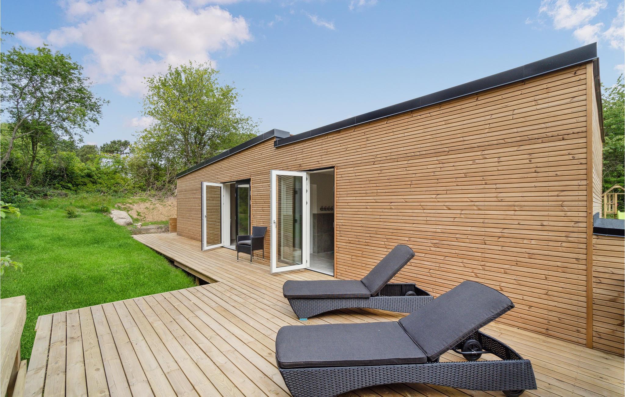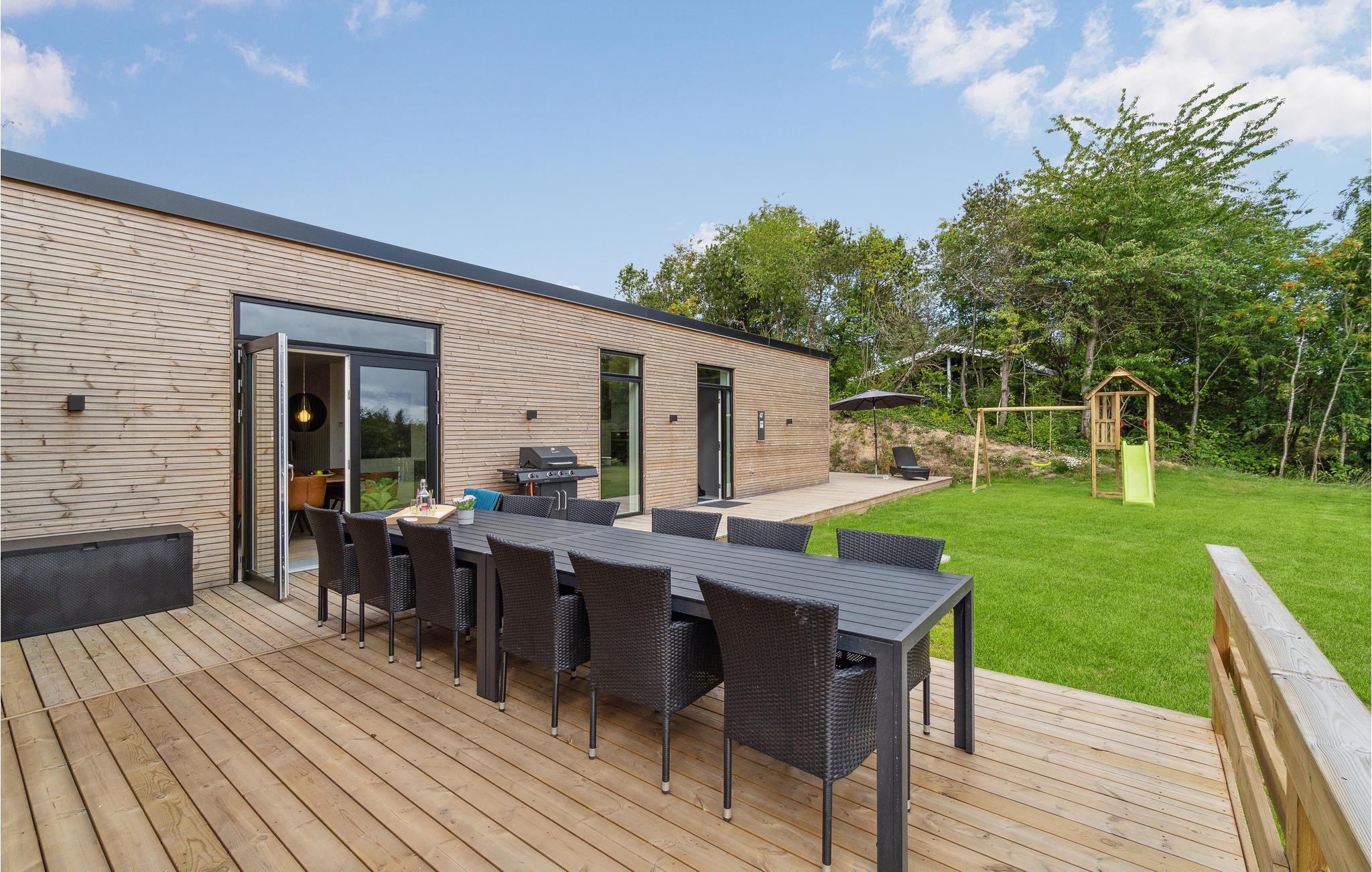 Moderne sommerhus ved Egsmark Strand med pool, aktiviteter og tæt på vandet.