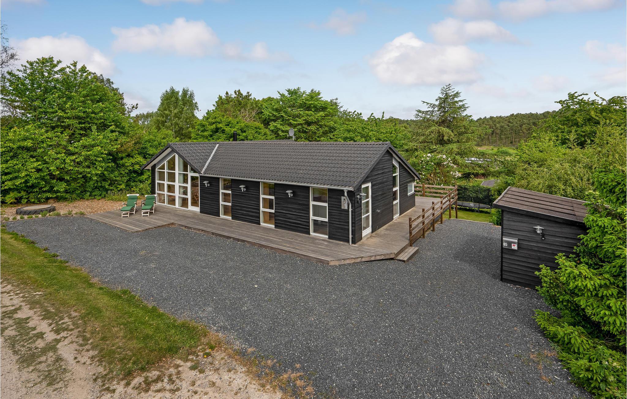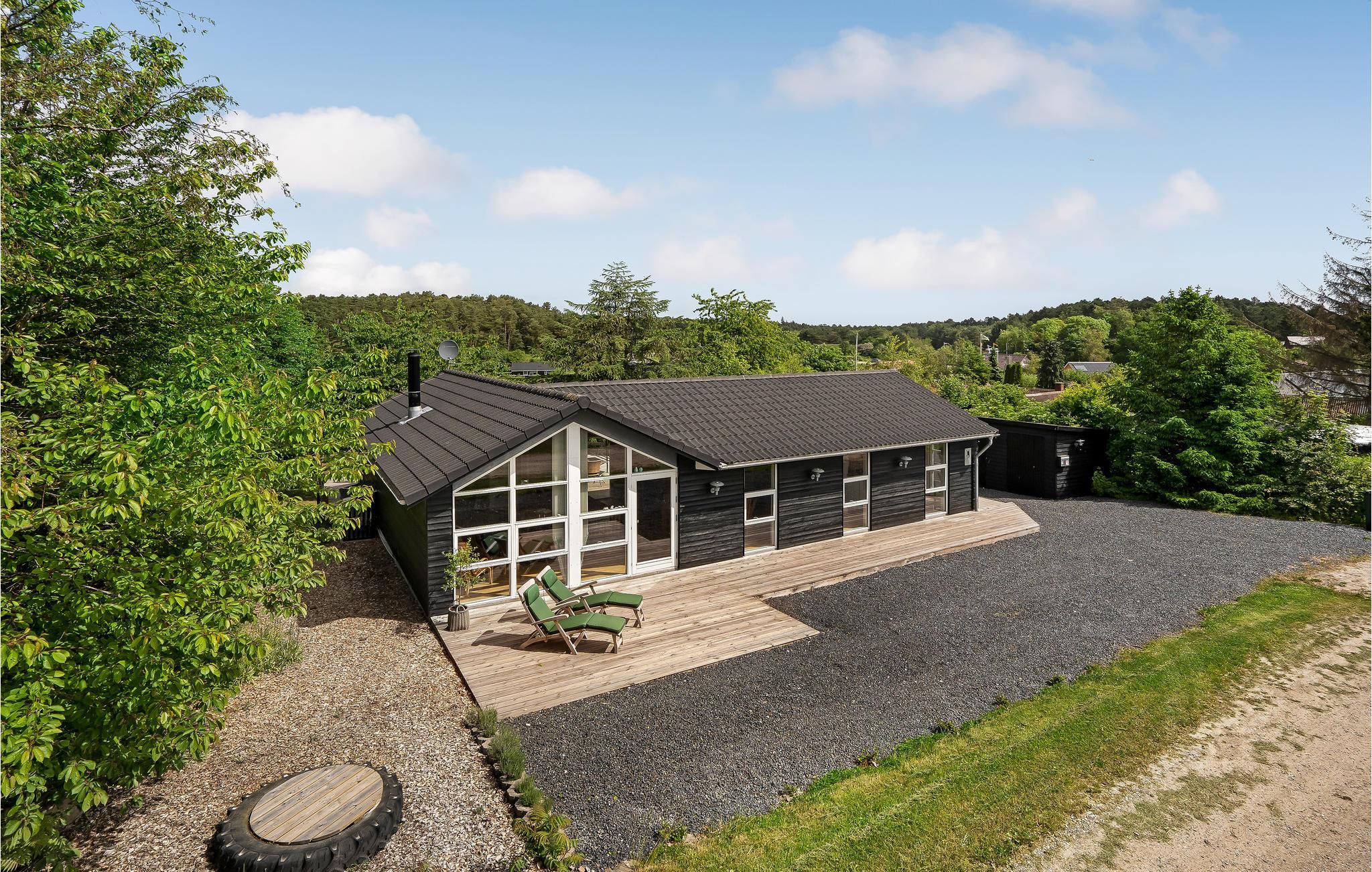 Flot og energivenligt fritidshus med stor sydvendt terrasse og naturskøn beliggenhed nær Egsmark Strand og Ebeltoft.