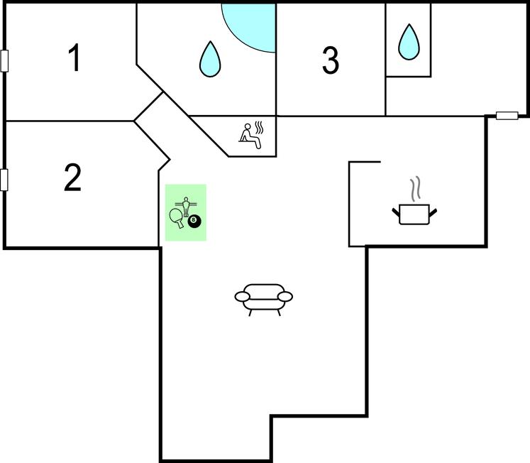 Badeværelse 10m2 (nr. 1) - WC. Varmt og koldt vand. Bruser