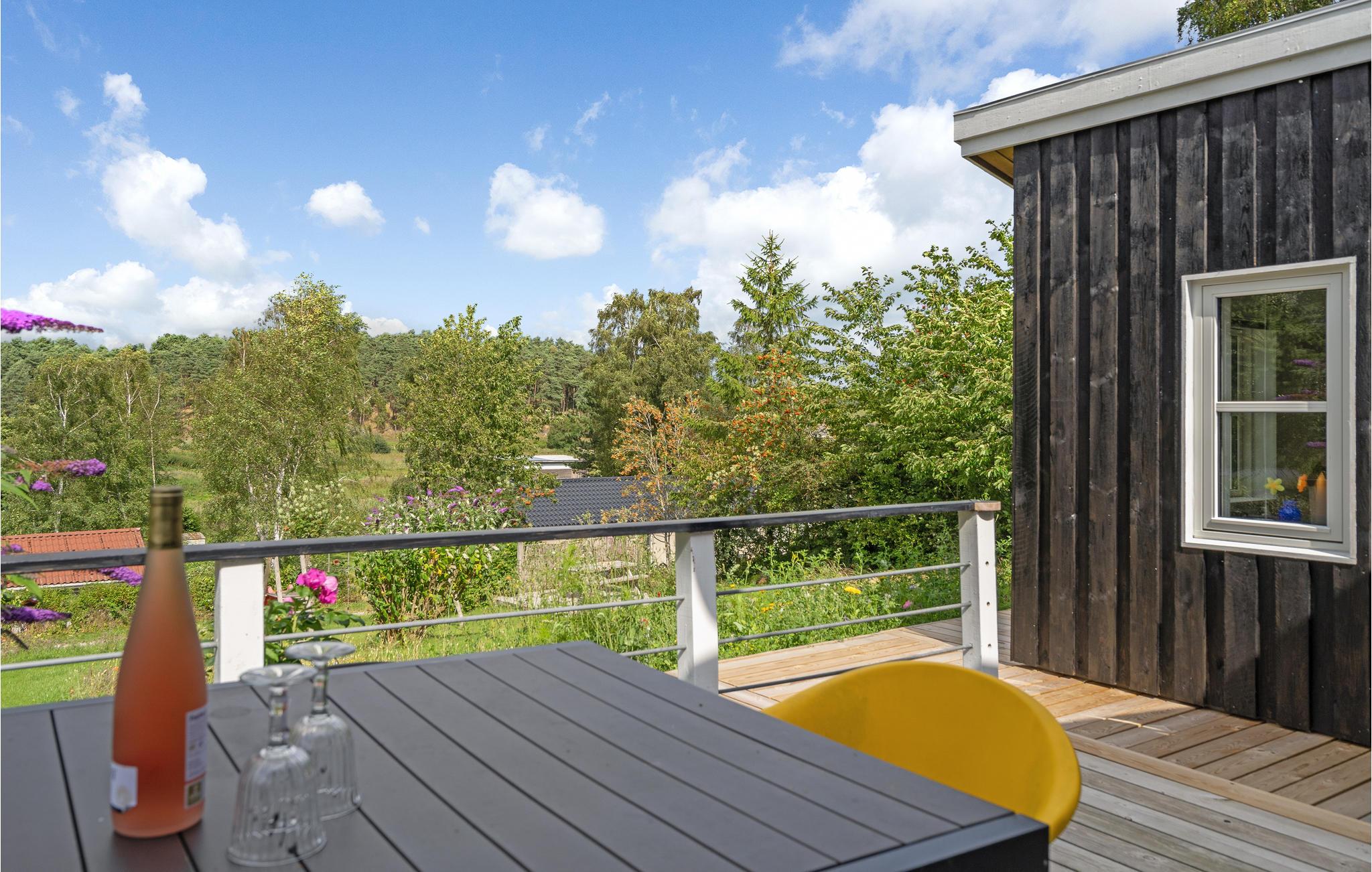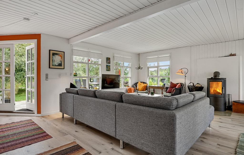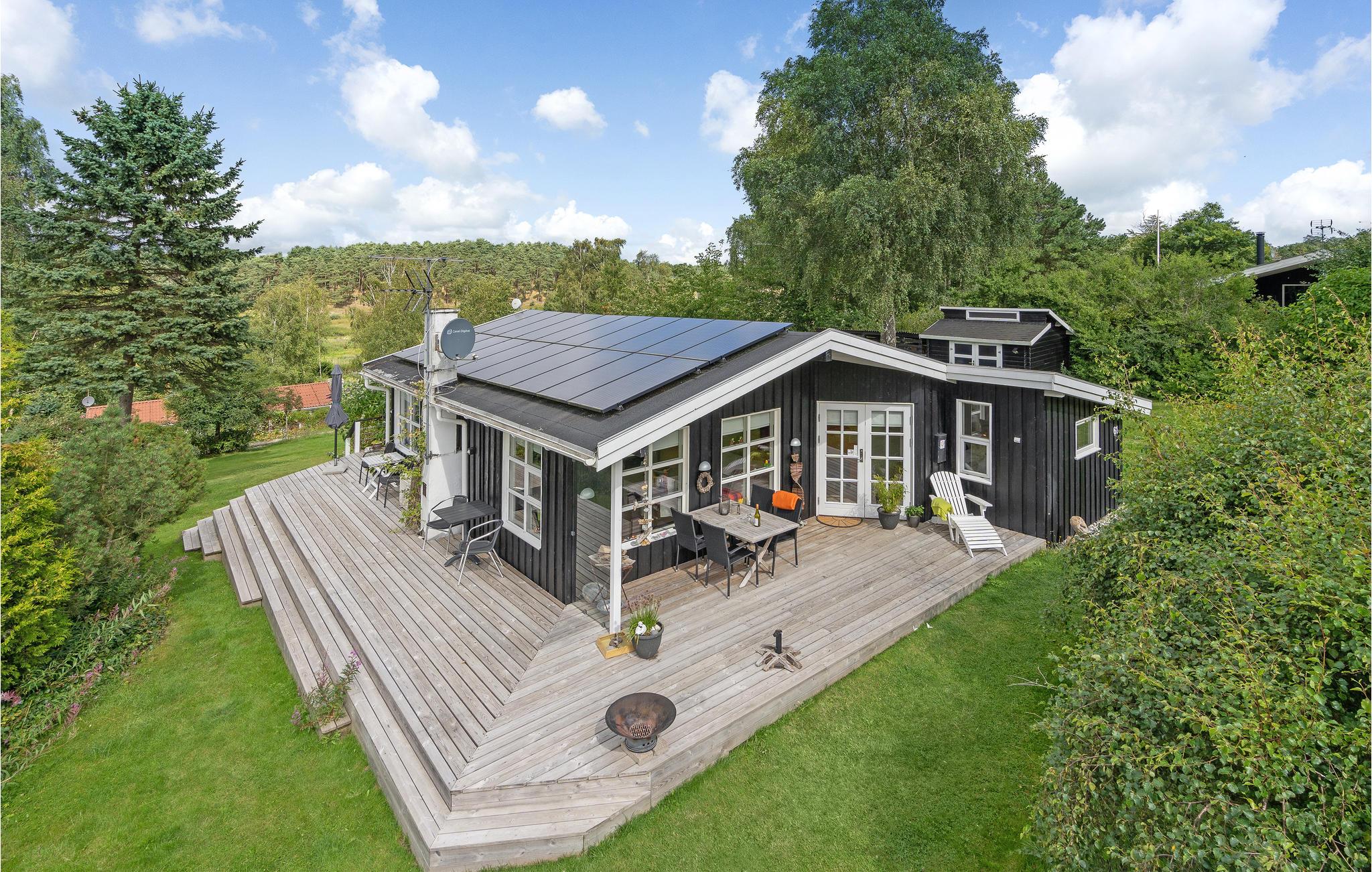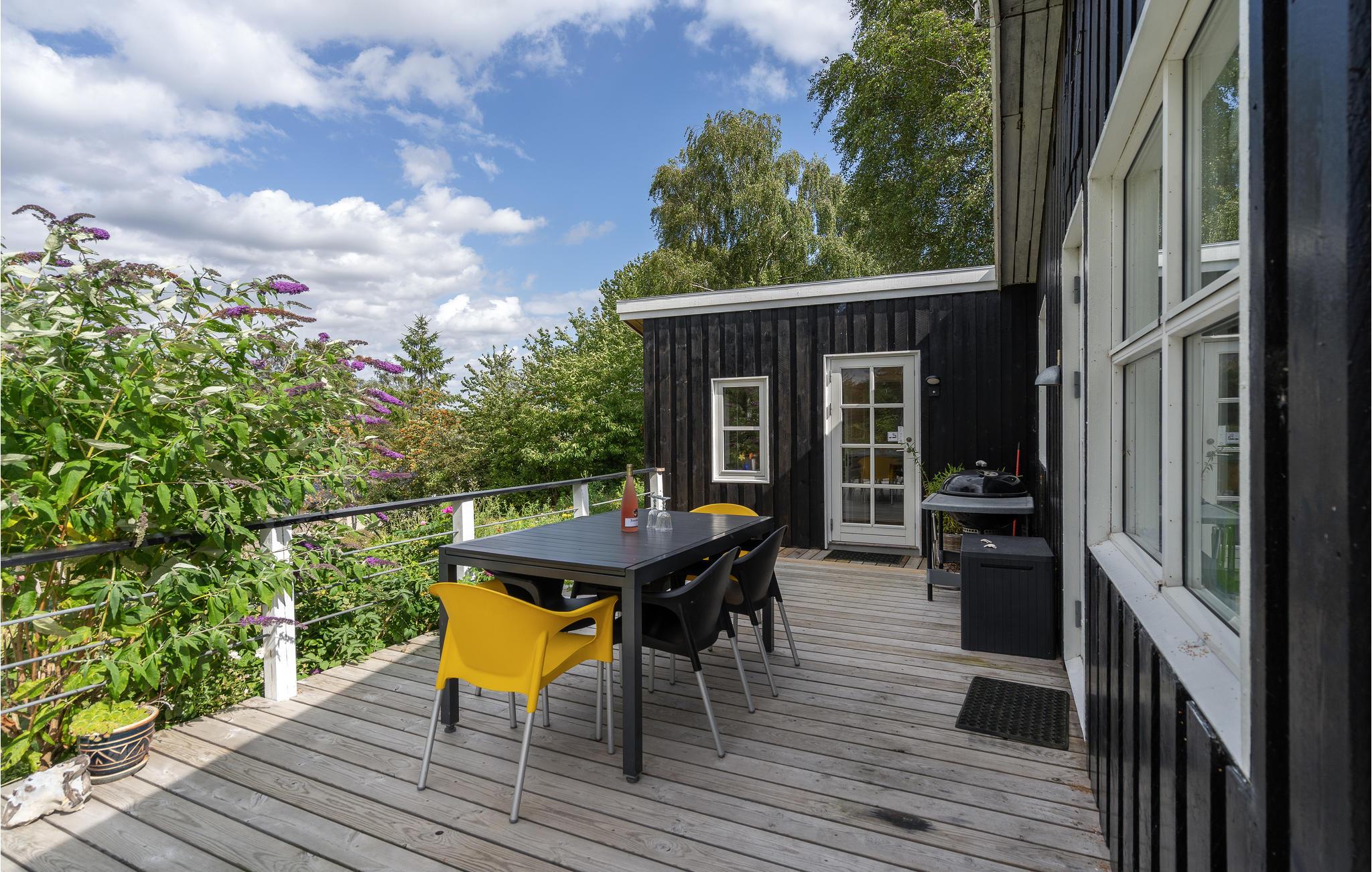 Flot sommerhus ved Egsmark Strand med moderne faciliteter og dejlig terrasse til afslapning og hygge.