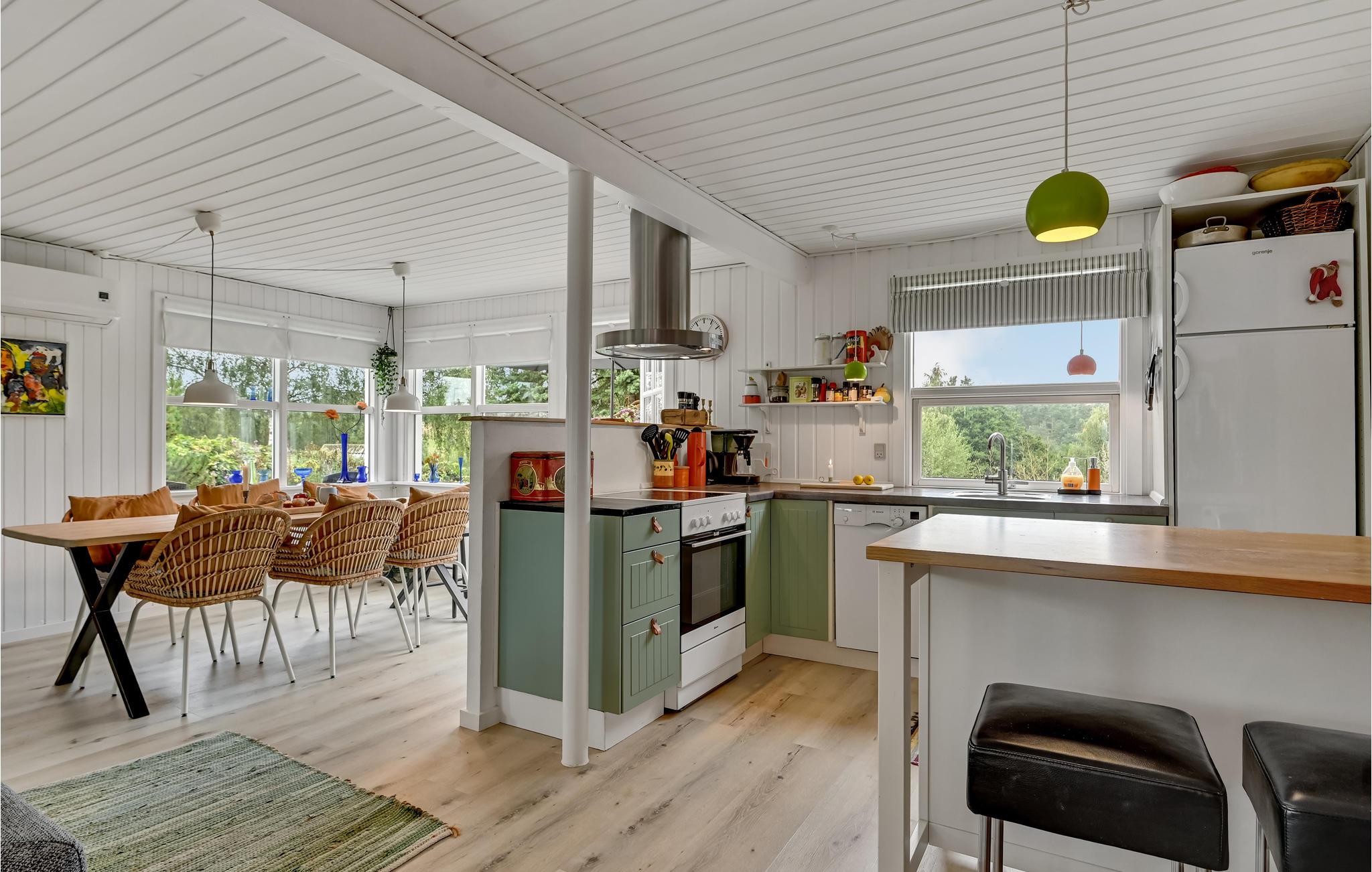 Huset er personligt indrettet og holdt i lyse farver, med vægt på hygge og anvendelighed til jeres fordel. Sommerhuset er veludstyret til et dejligt ferieophold, flere gode terrasser giver mulighed for at nyde udsigten, lækre feriemåltider eller bare slappe af i solen.