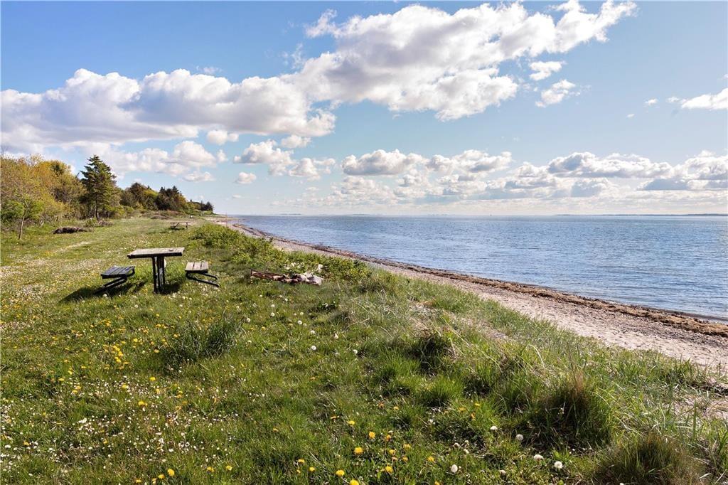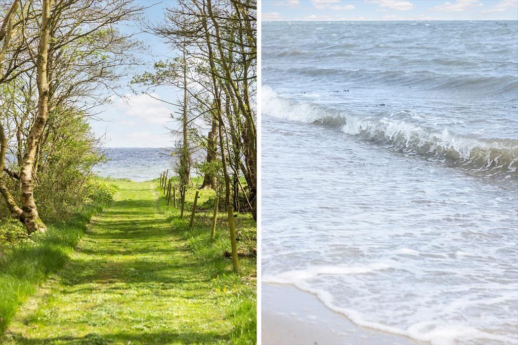 Det er noget ganske særligt at bo så naturskønt et sted, for sommerfrokosten bliver altså bare ekstra mindeværdig, når den kan indtages i solen med udsigt til vandet. Sommerhusets terrasse er med sin sydvendte orientering dejligt solrig, og samtidig kan I sidde tilpas ugeneret takket være grundens randbeplantning og de fredsommelige omgivelser. På grunden er der god plads til leg og havespil, og en privat sti fører lige ned til stranden, når I vil helt ned til vandkanten.