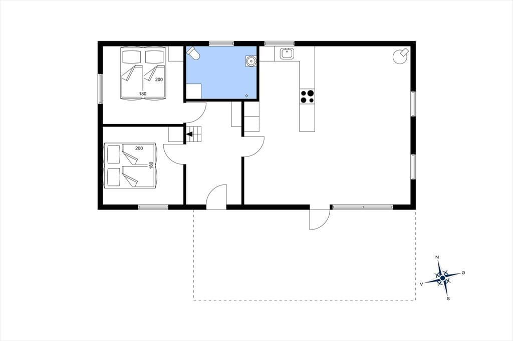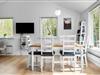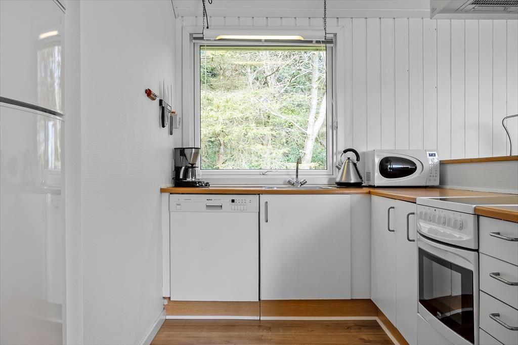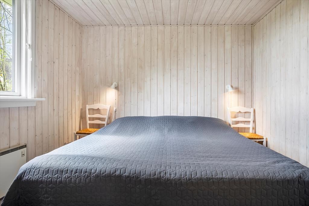 Selve sommerhuset er et charmerende byggeri på 76 velindrettede kvadratmeter. Huset blev renoveret i 2018, og det har et lyst og let udtryk med hvidmalede trælister på væggene og loft til kip i opholdsrummet. En brændeovn er med til at skrue op for den klassiske sommerhuscharme, og på moderne vis er der både tv med Chromecast og god wi-fi-forbindelse – med mindre I altså hellere bare vil nyde fjordudsigten, når I sidder med en god kop kaffe. Et dejligt køkken ligger i åben forbindelse med stuen, og derudover består planløsningen af et pænt brusebadeværelse med vaskemaskine plus to flotte soveværelser. Begge værelser er udstyret med dobbeltseng, og fra entréen har I adgang til en stor hems med ekstra madrasser.