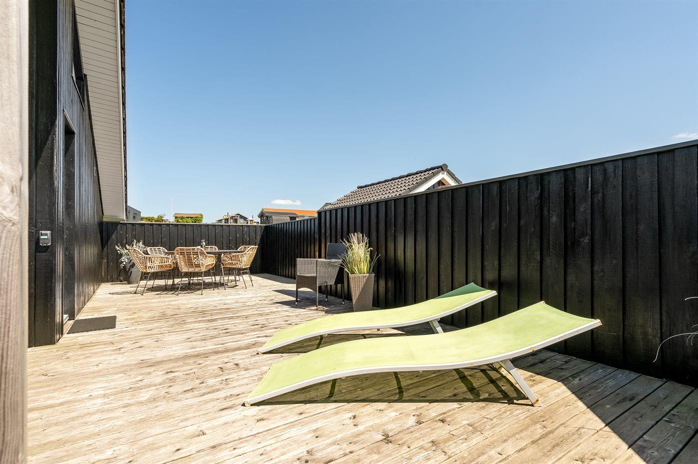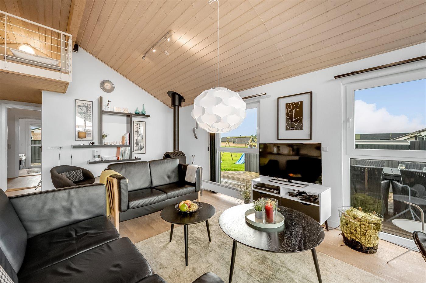 Særdeles flot sommerhus i træ, bygget i 2005, beliggende på en dejlig natur-/havegrund kun 300 m fra vandet. Fra såvel hus som grund er der en flot udsigt over vandet. Til huset hører dejlig stor såvel åben som overdækket terrasse med diverse havemøbler. Flotte opvarmede klinkegulve i køkken, spiseafdeling og på badeværelse. Trægulve i de øvrige rum. Lyse malede vægge samt trælofter. Dejligt stort badeværelse med bruseniche, lækker 2-pers. spa samt direkte adgang til husets sauna. Endvidere dejligt gæstetoilet. Køkken i åben forbindelse med stuen, der er udstyret med bl.a. opvaskemaskine, mikrobølgeovn, varmluftovn, komfur med keramiske kogeplader og fryser. Dejlig stor og pænt møbleret stue med brændeovn, DVD-afspiller, TV med parabol (digital) og stereoanlæg med CD-afspiller samt gratis trådløs internetforbindelse. Husets sovepladser fordeler sig på 2 soverum med dobbeltseng og 1 med 2 enkeltsenge samt god hems med 2 sovepladser til børn. Af yderligere udstyr kan vaskemaskine samt tørretumbler nævnes og der er installeret energibesparende varmepumpe. Til de mindste feriegæster findes der høj barnestol og barneseng samt sandkasse, gynge, rutsjebane og diverse spil. Et virkelig dejligt sommerhus på alle årstider, beliggende i et dejligt ferieområde med mange aktivitetsmuligheder, bl.a. windsurfing, fiskeri, Put & Take, badning samt gåture i den dejlige natur.
