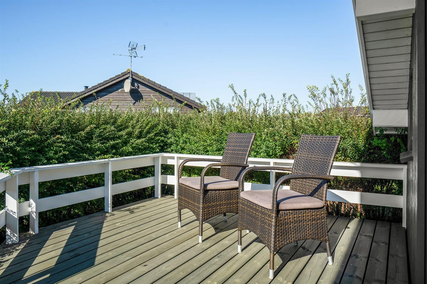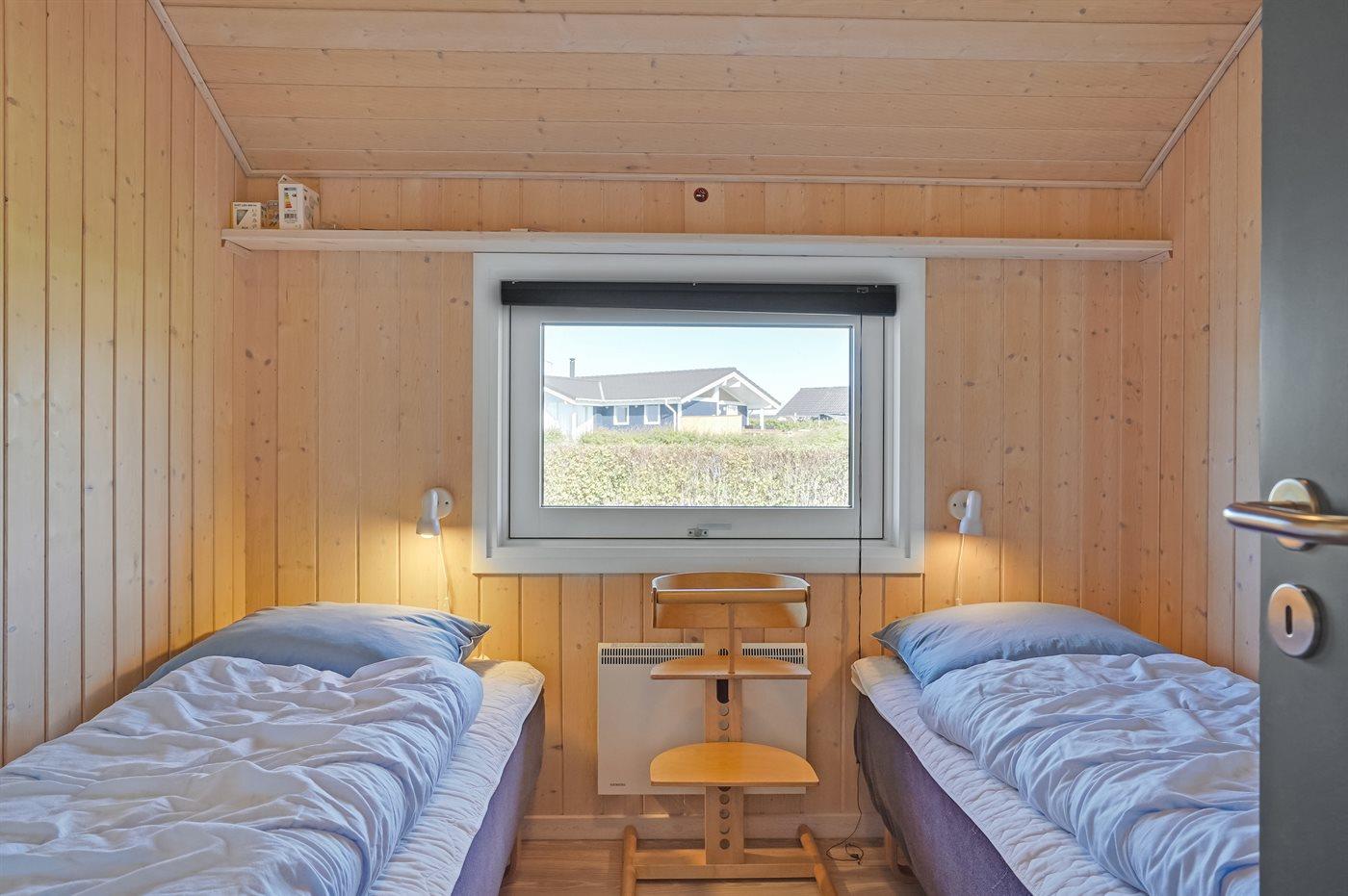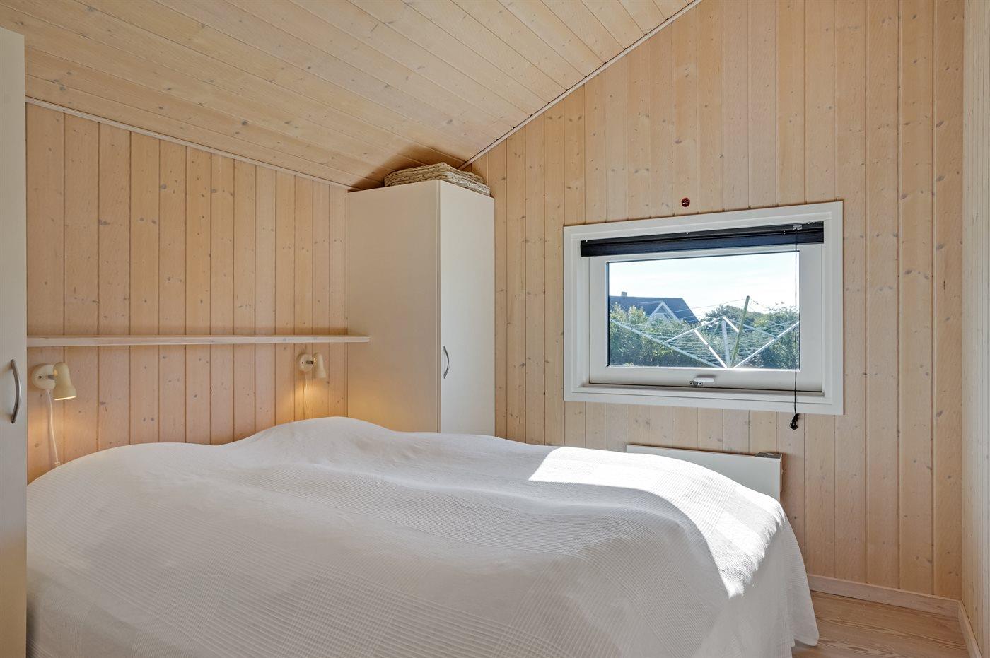 Der er i alt 3 soveværelser. Sovepladserne fordeler sig på: 4 sovepladser i dobbeltsenge. 2 sovepladser i enkeltsenge. 2 sovepladser i alkove. 2 af disse sovepladser befinder sig i stuen. Derudover er der 1 stk. barneseng.