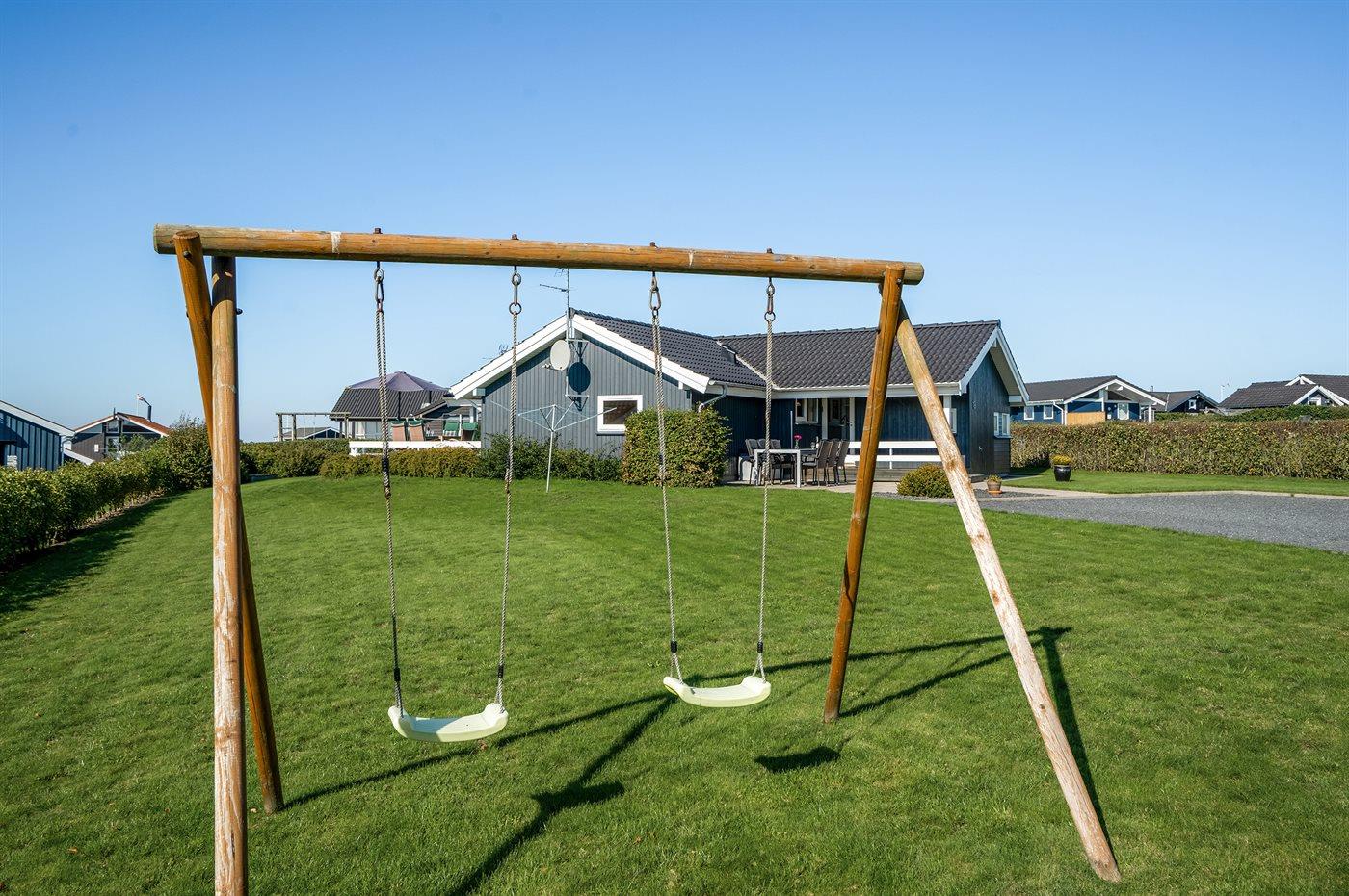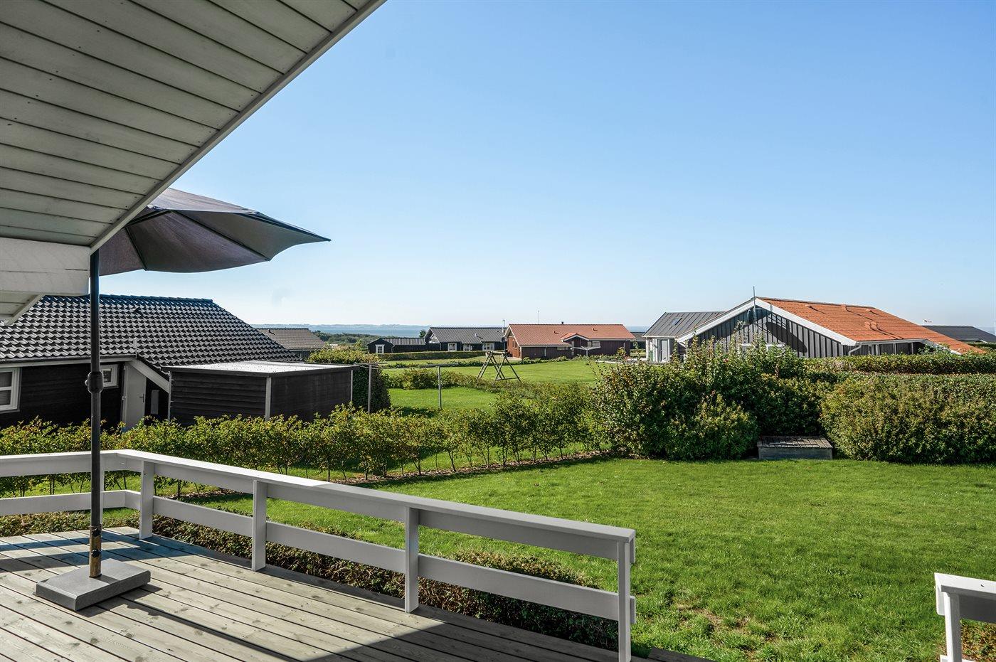 Ferieboligen er beliggende på en 1000 m² stor havegrund. Der er 350 m til fjorden. Nærmeste forretning er beliggende i en afstand af 500 m. Til ferieboligen hører 55 m² terrasseareal. Desuden er der 15 m² overdækket terrasse. Der er redskabsrum. Gynge. Sandkasse. Parkering ved ferieboligen.