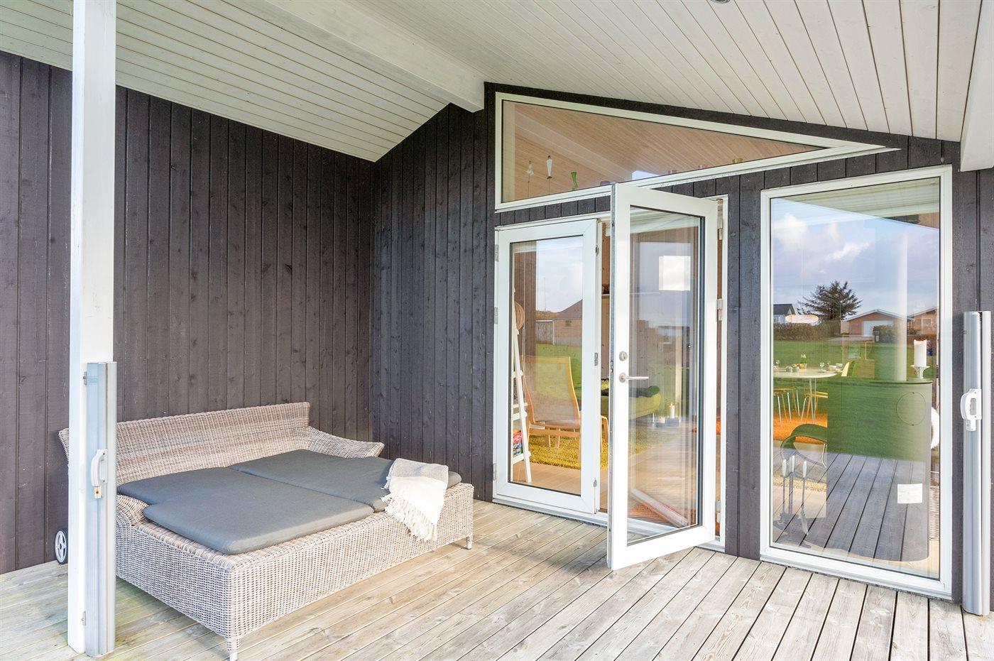Ferieboligen er beliggende på en 1000 m² stor naturgrund. Der er 150 m til fjorden. Til ferieboligen hører 100 m² terrasseareal. Desuden er der 20 m² overdækket terrasse. I haven er der sandkasse, trampolin, gynger og hængekøjer. Der ligger en legeplads i en afstand af 2000 m. Der er carport til rådighed. Parkering ved ferieboligen.