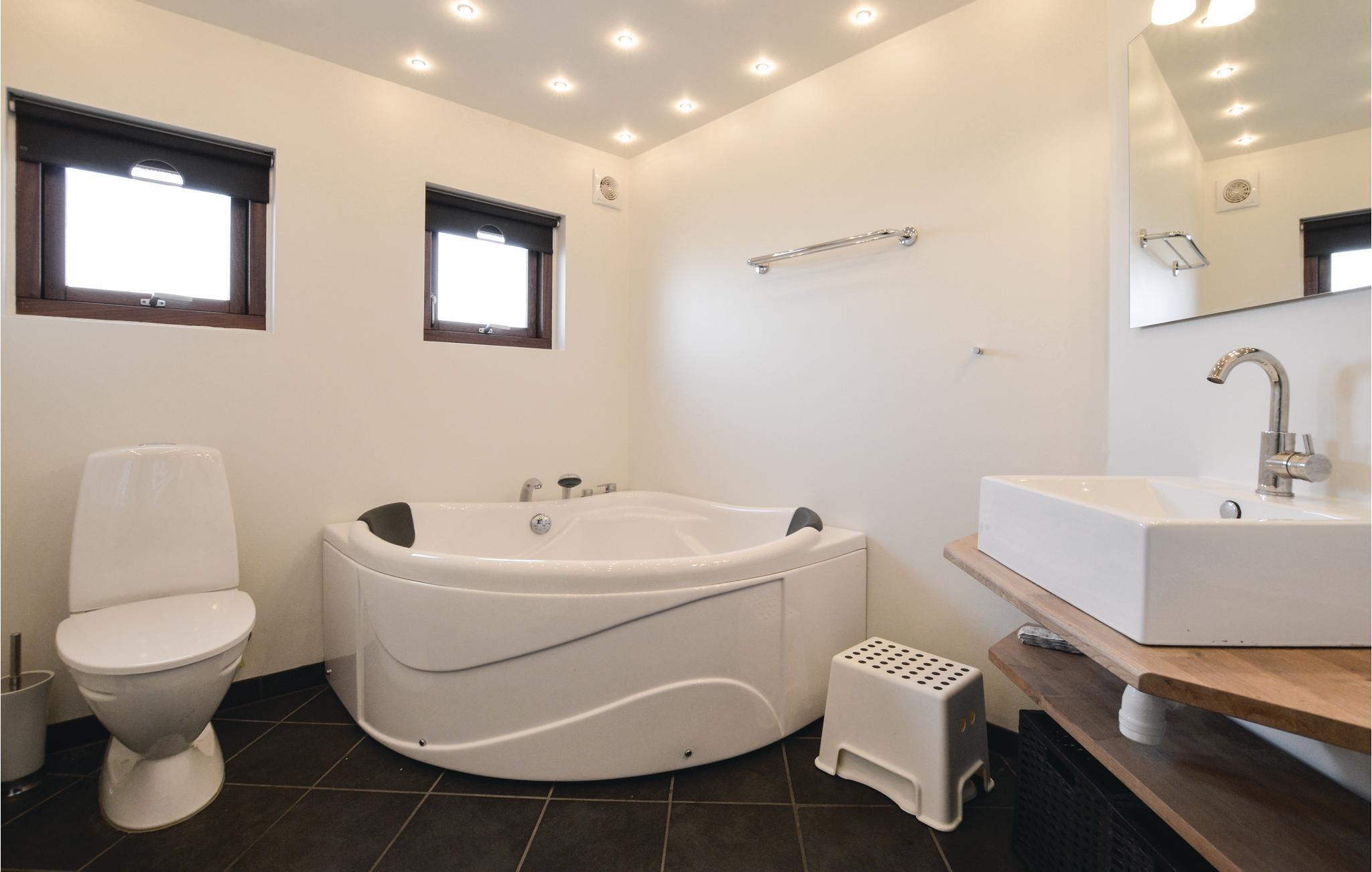 Moderne sommerhus i Vinderup med spabad, tæt på strand og legeplads, perfekt til afslapning og aktiv ferie.