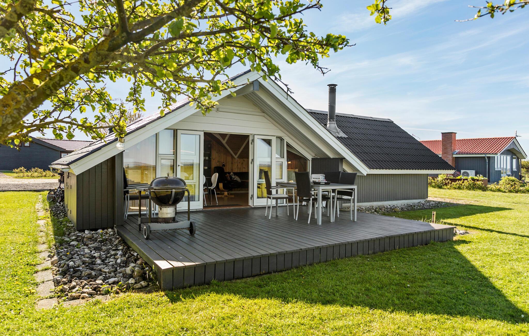 Feriehusets udendørsområde indbyder til mange skønne timer i det fri. Nyd solen på terrassen, slap af i skyggen af høje træer og afslut en skøn dag med et måltid fra grillen. Ferie ved Limfjorden betyder uforglemmelige naturoplevelser, fantastiske landskaber, badesjov og talrige aktiviteter for store og små. Med lavt vand og blide bølger er strandene ved Venø Bugt særdeles familievenlige, samtidig med at de er gode til surfing eller kajak. Tag på cykel- og vandreture i en mangfoldig natur, der er præget af skove, søer og hede.