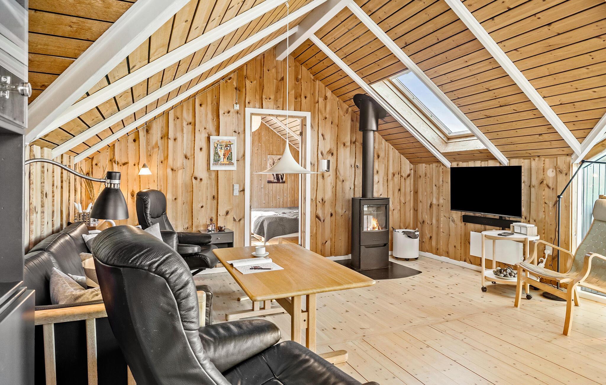 Drømmer I om en ferie ved vandet og tæt på naturen? Så er I kommet til det rette sted. Glæd jer til at slappe af med hele familien i husets lyse rum. Den hyggelige indretning med masser af træ sørger for en hyggelig atmosfære. Lav mad sammen her, nyd måltiderne sammen ved spisebordet med uhindret udsigt over Limfjorden. Efter en dejlig dag tilbragt ved vandet eller på udflugt, kan I tænde op i brændeovnen om aftenen og arrangere en hyggelig film- eller spilaften.