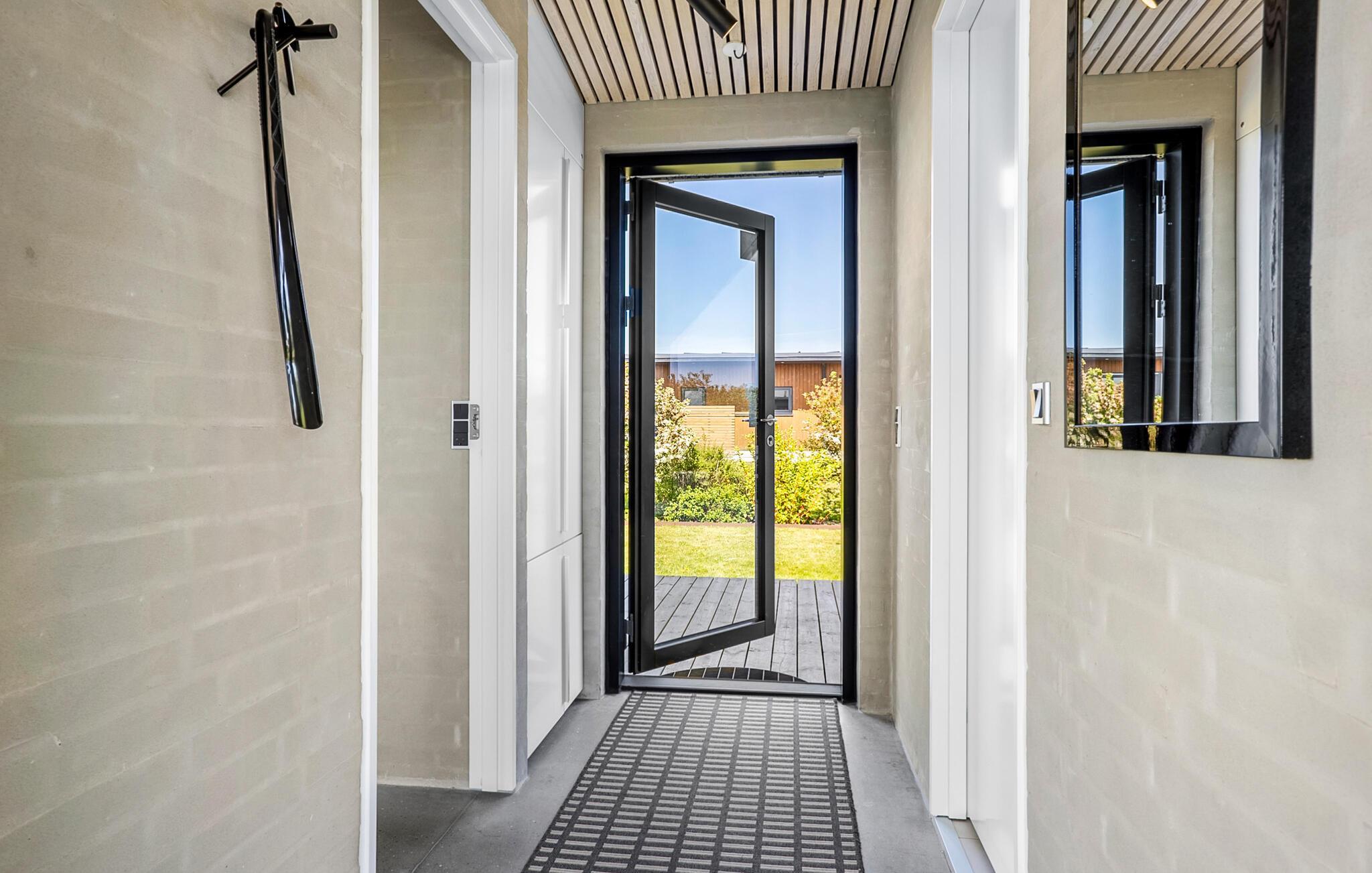 Lækkert arktitekttegnet sommerhus med udsigt over Limfjorden. Huset er opført i lækre og rustikke materialer, fremhæves skal især de store vinduespartier og loft til kip, som giver et fantastisk lysindfald. Fra begge soveværelser er der direkte udgang til terrassearealerne, og der hører et badeværelse til hvert soveværelse. I stuen kan I nyde udsigten fra spisebordet, der står lige i forlængelsen af køkkenet, eller I kan trække jer tilbage i sofaen foran brændeovnen. Huset har en stor, delvis overdækket terrasse med udsigt over fjorden, og på dage hvor vinden driller, kan I trække jer tilbage bag læskærmen i den lille, lukkede solgård bag huset. Huset råder over to havkajakker, som er til fri afbenyttelse. Alt i alt et lækkert sommerhus i det dejlige sommerhusområde ved Ejsingholm.