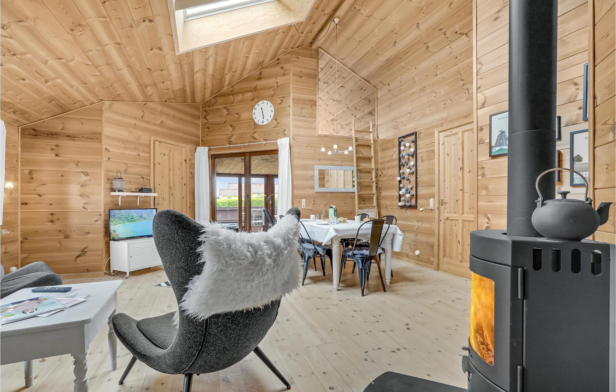 Hyggelig bjælkehytte med fjordudsigt og wellness