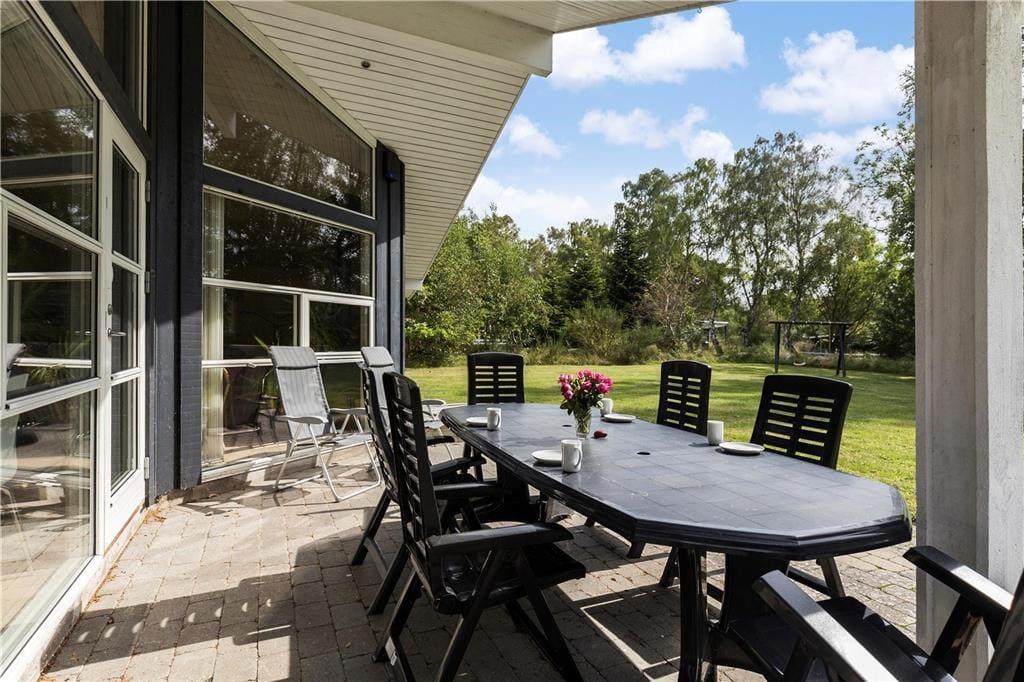 Der er en sandkasse på terrassen, hvor familiens mindste kan lege, mens I drikker kaffen ved bordet. Der er også masser af plads på den store grund til at spille forskellige havespil og tage en tur i gyngestativet for børnene. Den overdækkede terrasse forlænger sæsonen så der kan grilles langt ind i efteråret. Hvis I vil en tur i skoven, ligger Ellinge Indhegning lige ved siden af huset og byder på mange stier blandt overvejende fyrretræer, men også en del løvfældende træer. Hvis I går den anden vej mod havet og Sejerø Bugt venter også fine naturstier bag Korevlerne, som er en naturskabt lagune, hvor I skal passere broerne over vådområdet, inden I når det fine strandareal.