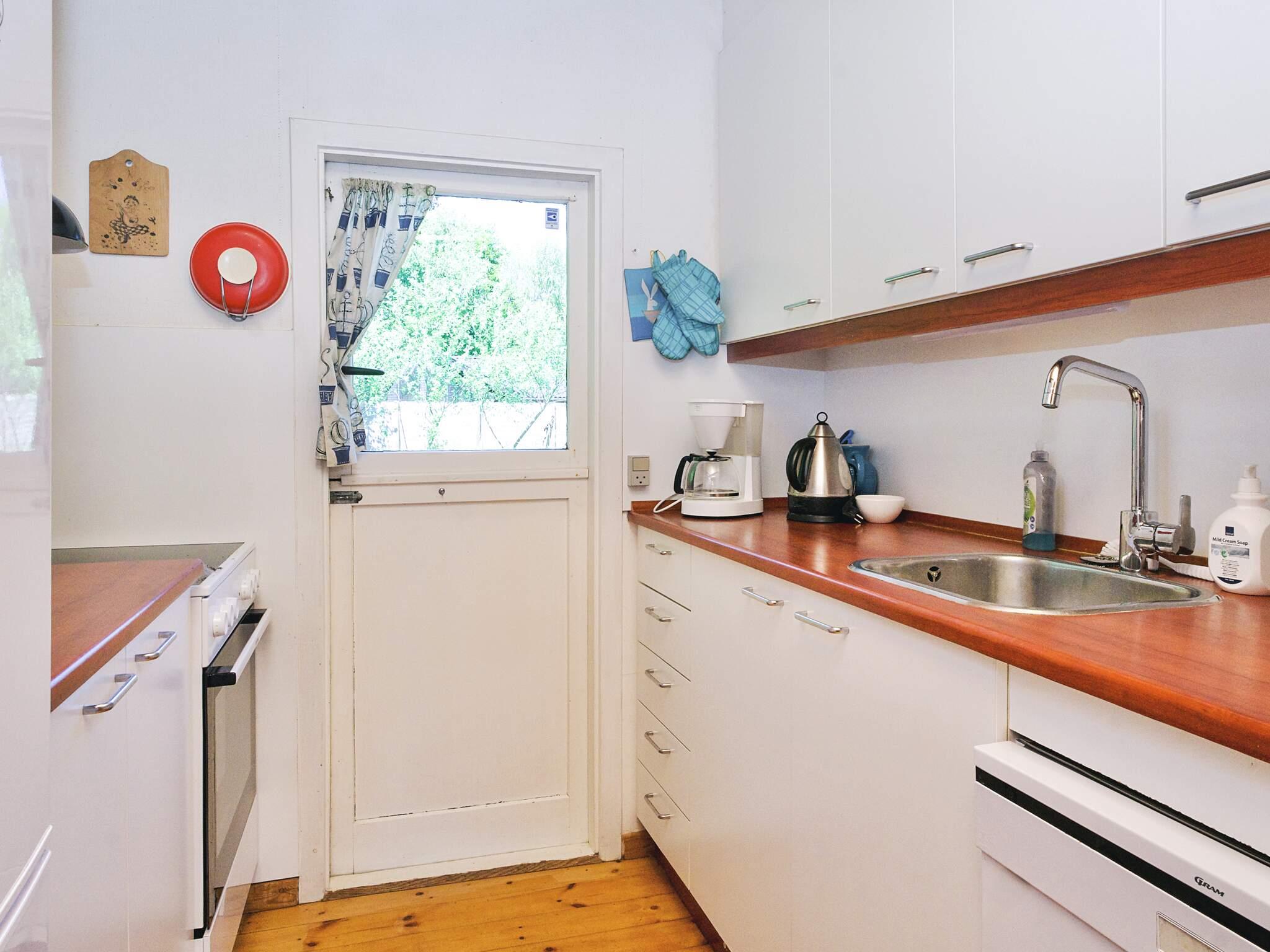Indvendigt byder huset på et lille ældre køkken i forbindelse med spisepladsen, ideel til familiemåltider, og en indbydende stue med brændeovn. Gæster kan nyde deres yndlingsprogrammer ved at streame gennem deres egne tv-udbydere. Badeværelset er udstyret med en vaskemaskine, hvilket tilføjer bekvemmelighed til længere ophold. Interiøret kombinerer funktionelt design med en varm, hjemlig atmosfære velegnet til afslapning og socialt samvær.
