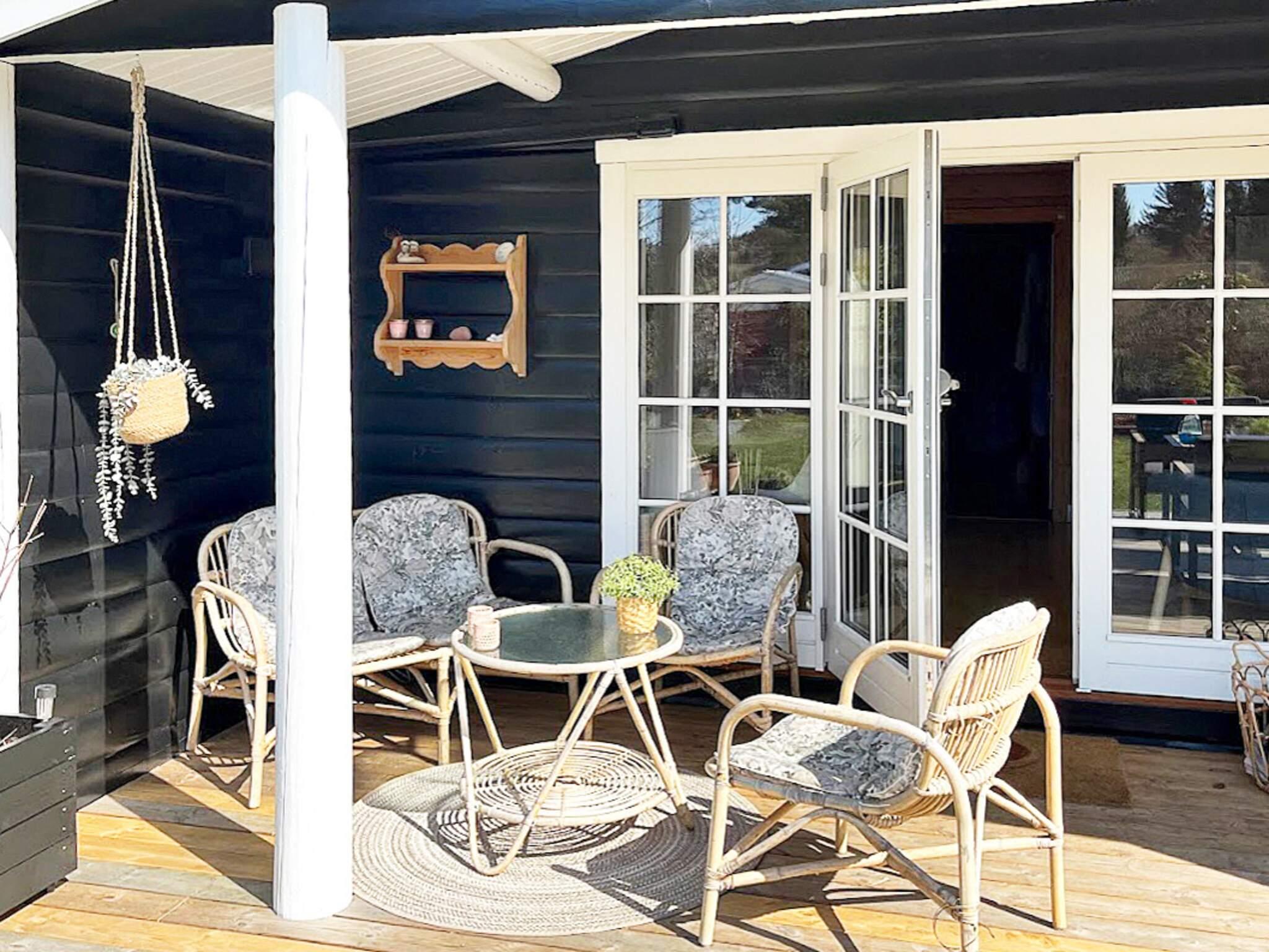 Bjælkehytte med dejligt udemiljø og vildmarksbad beliggende for enden af ??lukket vej, cirka 150 meter fra skoven og kort køretur til en af ??Danmarks bedste strande ved Ellinge Lyng. Entré med plads til overtøj og adgang til nyt badeværelse fra 2022. Fra entreen er der adgang til værelse med to enkeltsenge og køjeseng samt adgang til værelse med 180x200 cm dobbeltseng og udgang til terrasse med vildmarksbad. Fra køkkenet er der adgang til et værelse med 180x200 cm dobbeltseng. Et veludstyret køkken med blandt andet Nespresso-maskine og røremaskine til bagning. Stue med brændeovn og TV med mulighed for at streame egne tjenester via internettet. Fra stuen er der udgang til en stor, delvist overdækket terrasse med havemøbler, liggestole og grill. En skøn grund med muligheder for både wellness og aktiviteter. Vildmarksbad med god plads til 4 personer, udendørs bruser med koldt og varmt vand. Der er en trampolin,