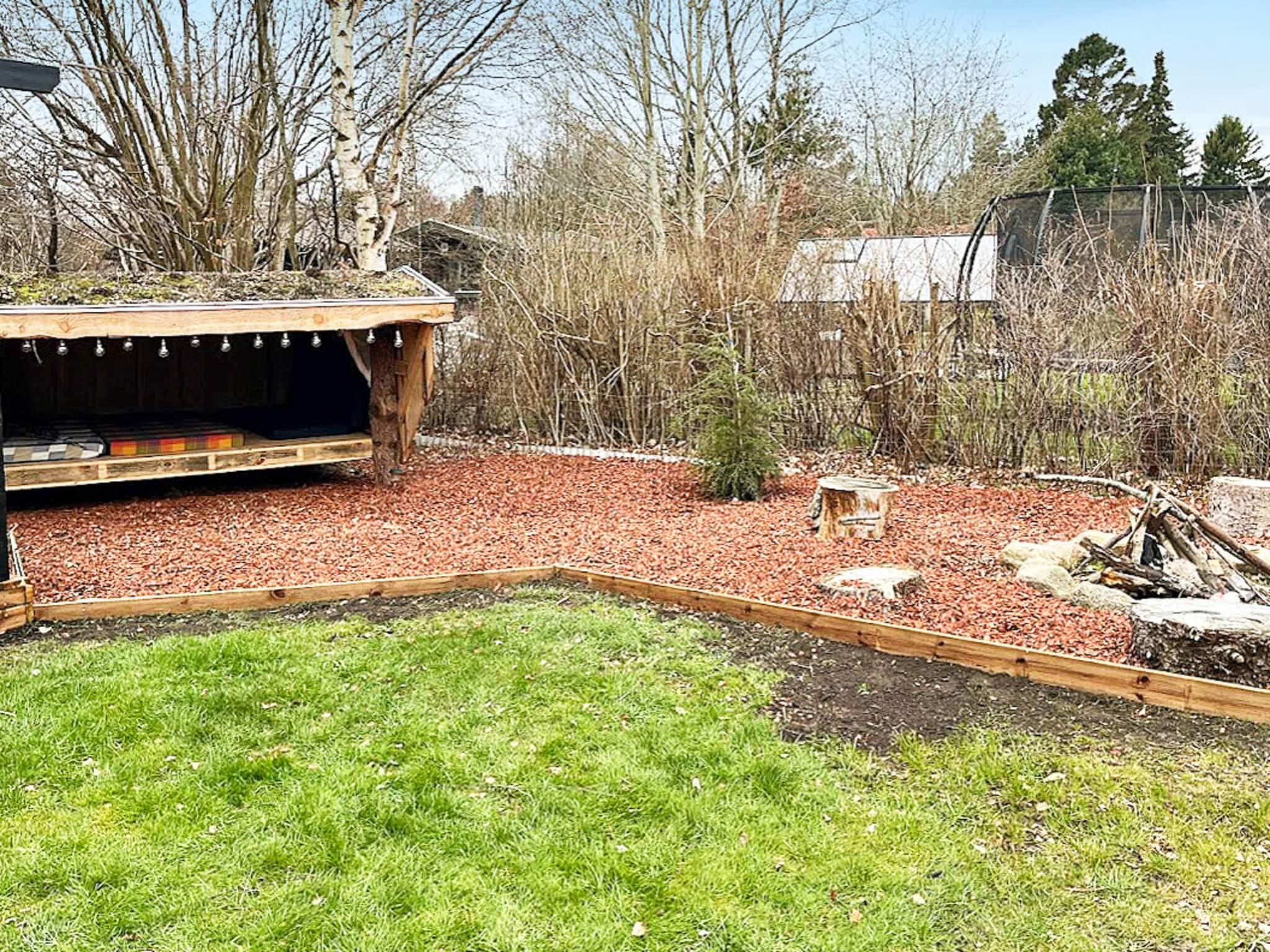 gynge, og udendørs pejs, samt et område med shelter, bålplads, og pergola med plads til aftensol og afslapning. Mindre end 10 minutter væk i bil finder du isboder, restauranter, minigolf, golfbane, indkøbsmuligheder og en børnevenlig sandstrand med klitter og livredder om sommeren. Ikke tilgængelig for udlejning til ungdomsgrupper.