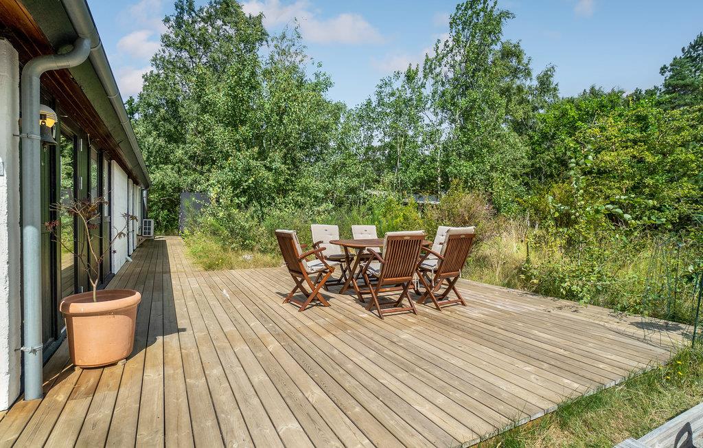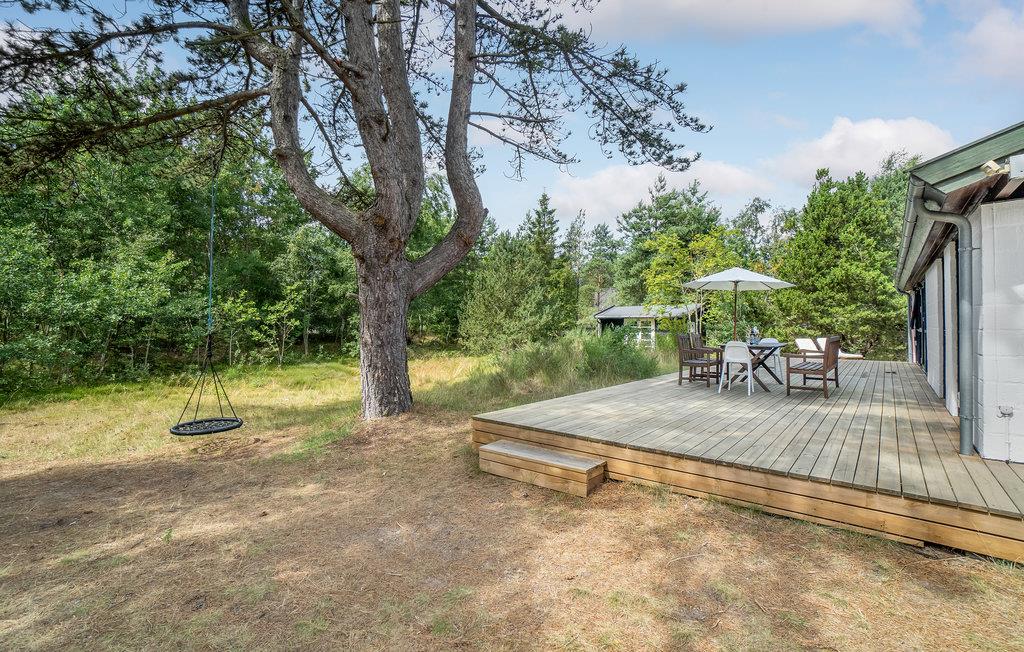 Udenfor venter der jer en lille wellness-oase, og så er der både sol og skygge på den store, delvist overdækkede terrasse rundt om huset. Find jer godt til rette i træmøblerne med en kold forfriskning, mens børnene hygger sig på den store naturgrund. De mange kroge og forskellige legefaciliteter garanterer, at de små ikke kommer til at kede sig. Der er også en udendørsbruser til at skylle sand og solcreme af på varme dage.