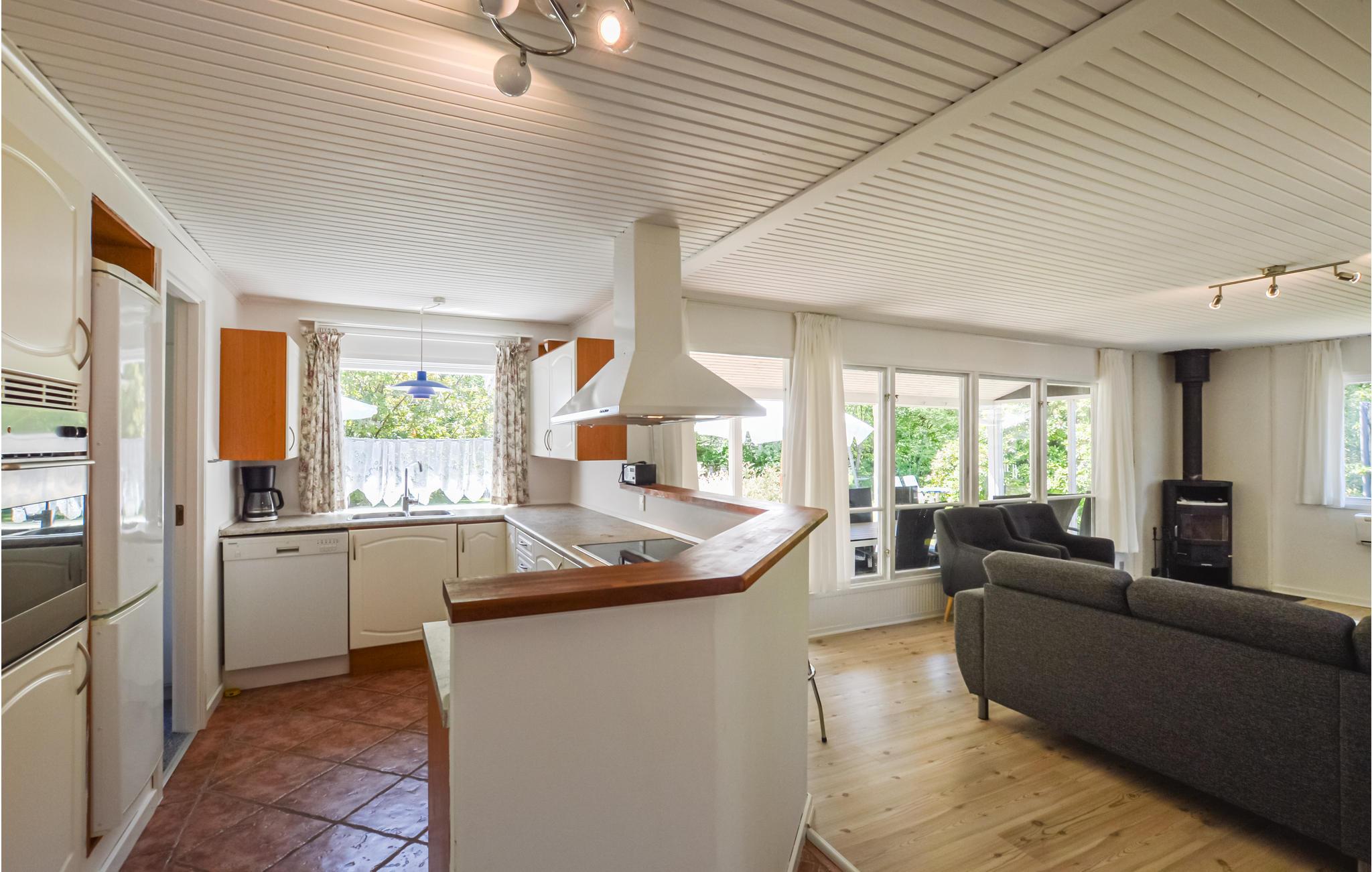 Huset byder på hele 4 soveværelser, et dejligt åbent køkken ud mod spisestue/stue med brændeovn og 2 varmepumper, 2 badeværelser begge med brus, fra stuen udgang til dejlig såvel åben som overdækket terrasse. For enden af garagen med egen indgang finder I "sparum" med sauna og hyggeligt opholdsrum med bruser og håndvask.