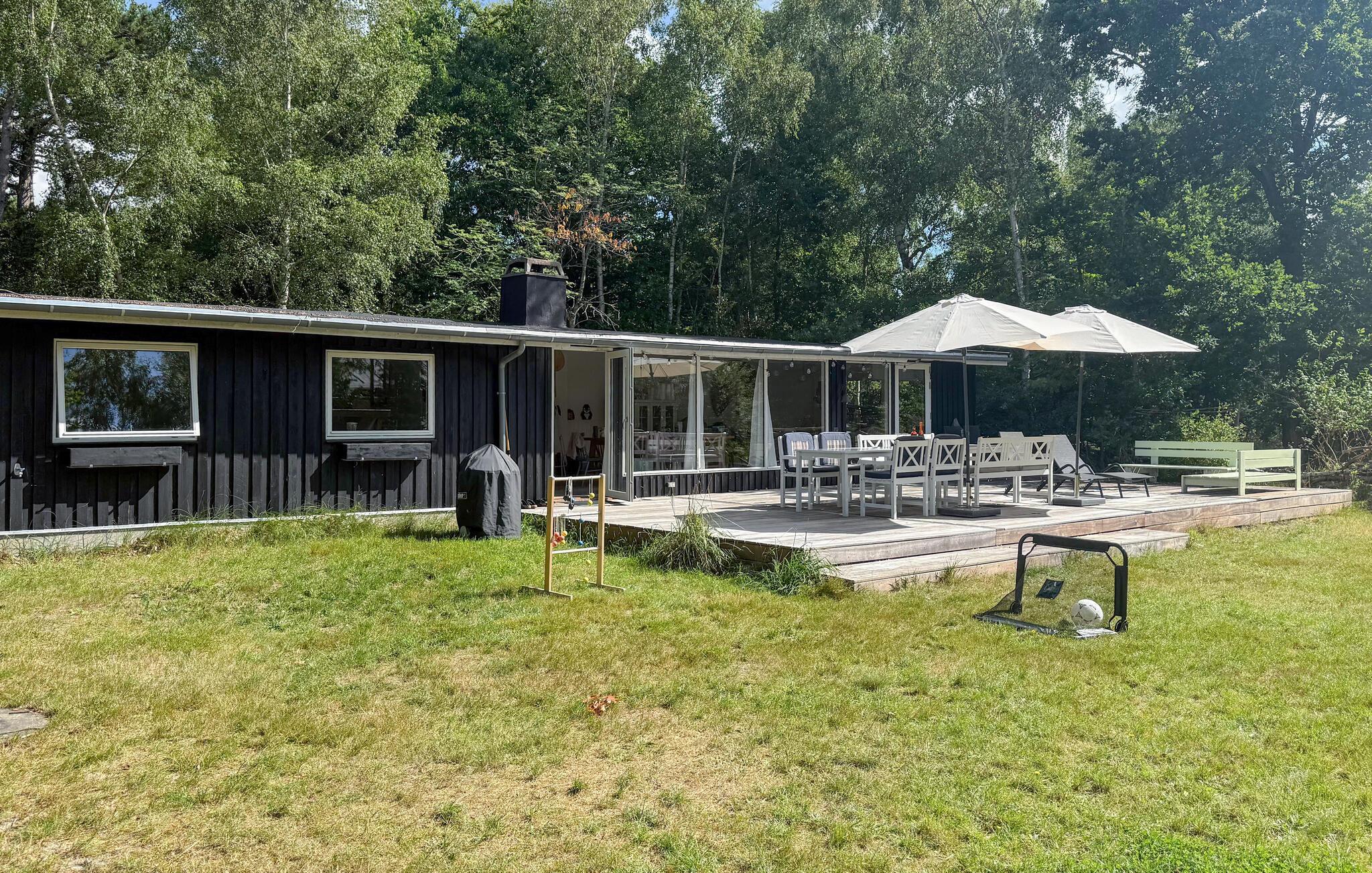 Dette feriehus ligger smukt i Ellinge Lyng, tæt på Sejerøbugten. Når I træder ind i huset, finder I et attraktivt, komfortabelt interiør og en rolig, afslappet atmosfære. Det rummelige hus byder på plads til en stor familie eller til to familier, der holder ferie sammen. Tilbring mange skønne timer i den åbne opholdsstue og nyd godt af vinduerne fra gulv til loft, som skaber en lys atmosfære og giver en fornemmelse af nærhed til naturen. Fra stuen træder I ud på terrassen, hvor I kan nyde jeres morgenkaffe og senere lækre udendørs måltider, mens I kigger på de grønne omgivelser. Huset ligger på en fredet naturgrund, omgivet af gamle træer. Ikke kun indenfor, men også udenfor, vil børn og barnlige sjæle finde legeredskaber til mange timers sjov. Socialiser med hele gruppen over en omgang vikingespil og afslut senere dagen omkring lejrbålet.