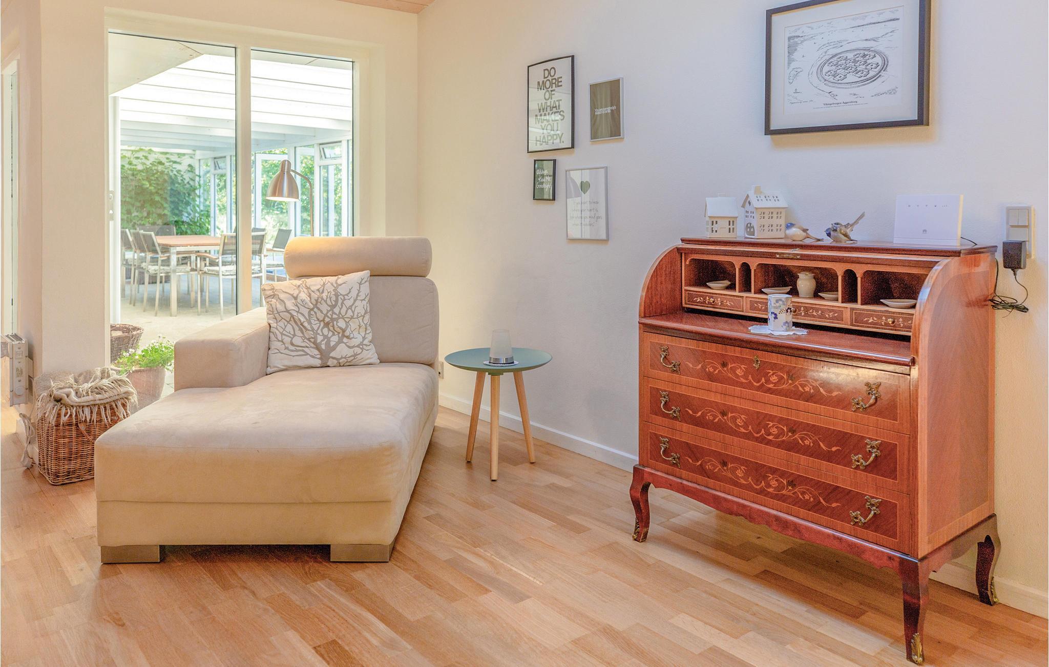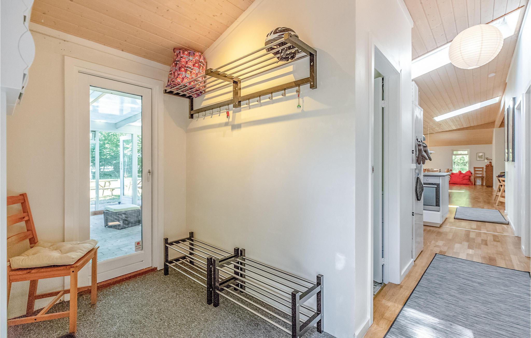 Stort hyggeligt og charmerende feriehus, her er rigeligt med plads til den store familie. Huset indeholder 5 gode værelser, gæstetoilet samt badeværelse med brus, åbent samtalekøkken i kombination med spisestue/stue med pejs. Udgang til stor havestue hvor der kan hygges selv om vejret ikke viser sig fra sin bedste side. I haven er der plads til børnene kan boltre sig mens der tændes op i grillen og roen sænker sig. Huset er beliggende for enden af en blind vej, her er masser af ro og fuglesang, det sker også at rådyrene kikker forbi.