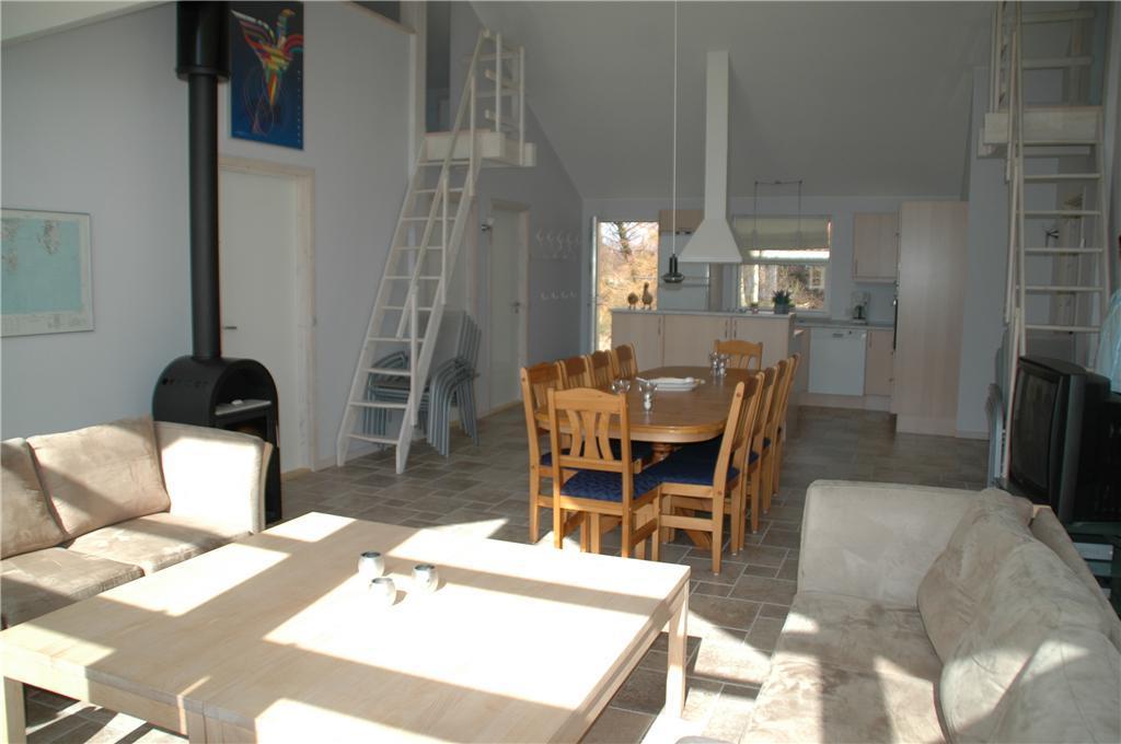 Lys og venlig indretning med klinkegulve og gulvvarme overalt. Hyggelig stue med brændeovn, TV med parabol og danske (inkl. TV2) og tyske kanaler, stereoanlæg med CD-afspiller samt radio. Dejligt køkken med keramiske kogeplader, indbygningsovn, køleskab med fryser, opvaskemaskine og mikrobølgeovn. Stort, dejligt flisebadeværelse med spabad, bruseniche, vaskemaskine og tørretumbler samt indgang til sauna, og et fint, mindre flisebadeværelse med bruseniche. Husets 10 sovepladser fordeler sig på 3 gode soveværelser, alle med dobbeltseng, samt 2 hemse med hver to madrasser. Til de små feriegæster er der barneseng og barnestol. Internet.