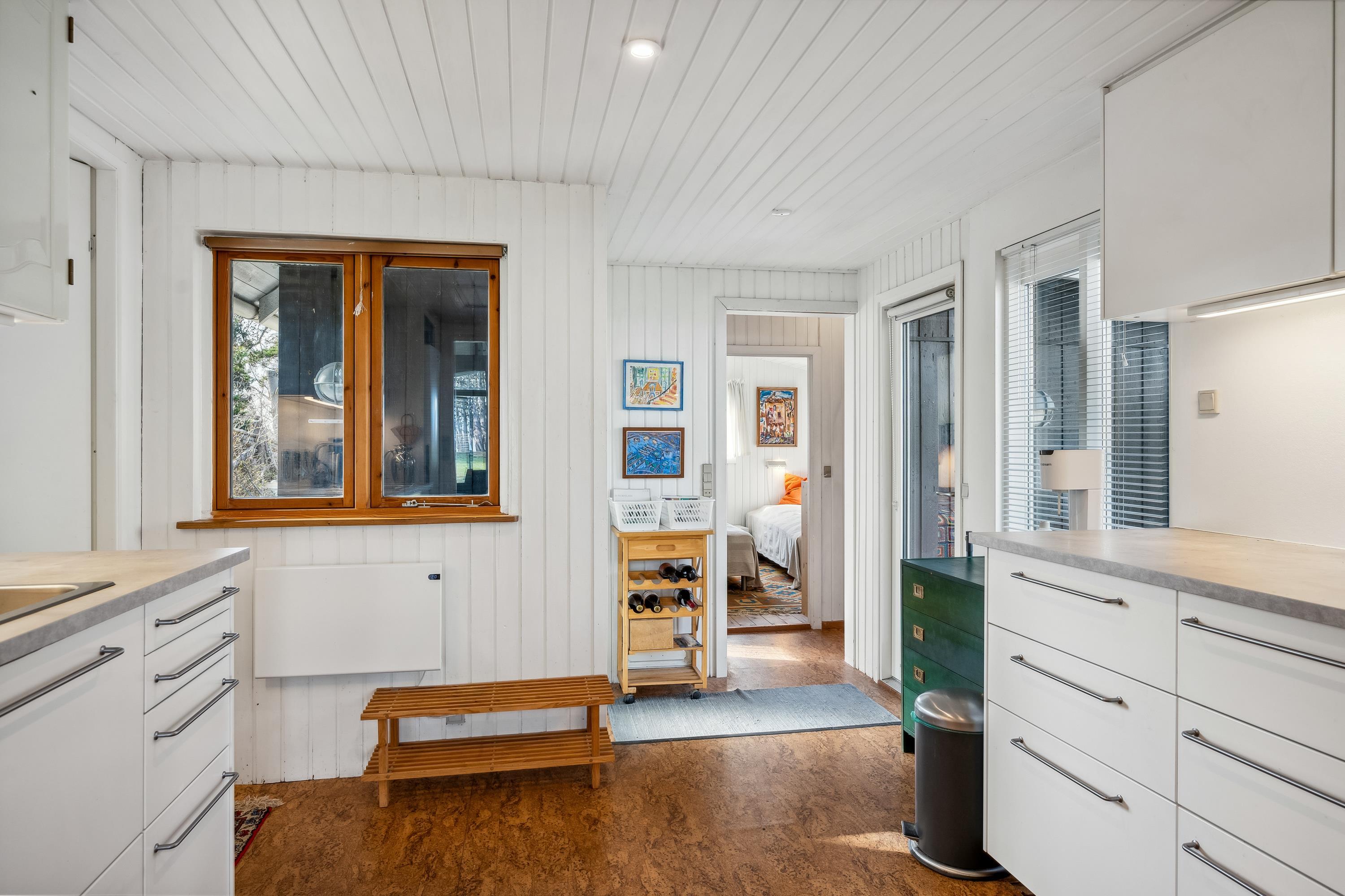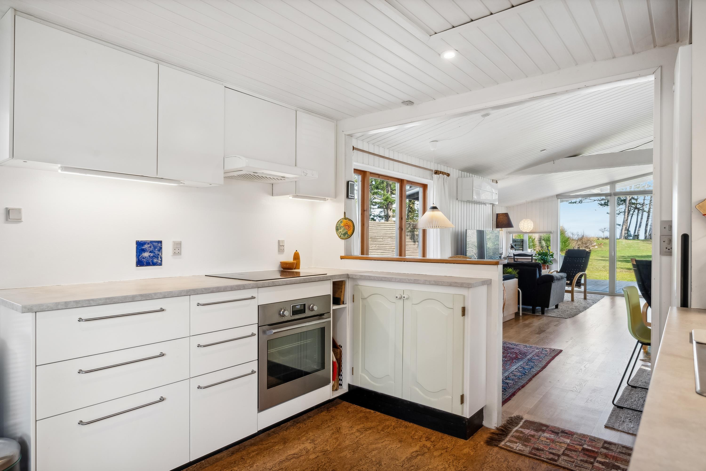 Allerede når man træder ind af døren til dette super hyggelige feriehus, fornemmer man den ægte sommerhusstemning, der er i huset. Her finder man en hyggelig og velindrettet stue med brændeovn og varmepumpe og hvorfra der er udgang til en skøn overdækket terrasse. Nyrenoveret og funktionel køkkenafdeling med b.la. opvaskemaskine. Husets sovepladser fordeler sig på tre gode værelser, heraf to med dobbeltsenge samt et værelse med to enkeltsenge. Fra det ene soveværelse er der direkte udgang til en hyggelig solgård. Flot nyt badeværelse med bruseniche og gulvvarme. Udvendig finder man skønne terrassearealer med havemøbler og en virkelig hyggelig overdækket solgård, så man en kølig aften også sagtens kan sidde ude. Med den fantastiske beliggenhed som huset har, så har man den skønneste strand i "baghaven". Fra grunden kan man kigge over på den lille ø Hjelm, som er kendt for Marsk Stigs tilflugtssted i 1287. Stor græsplæne som er velegnet til leg og udendørs hygge.