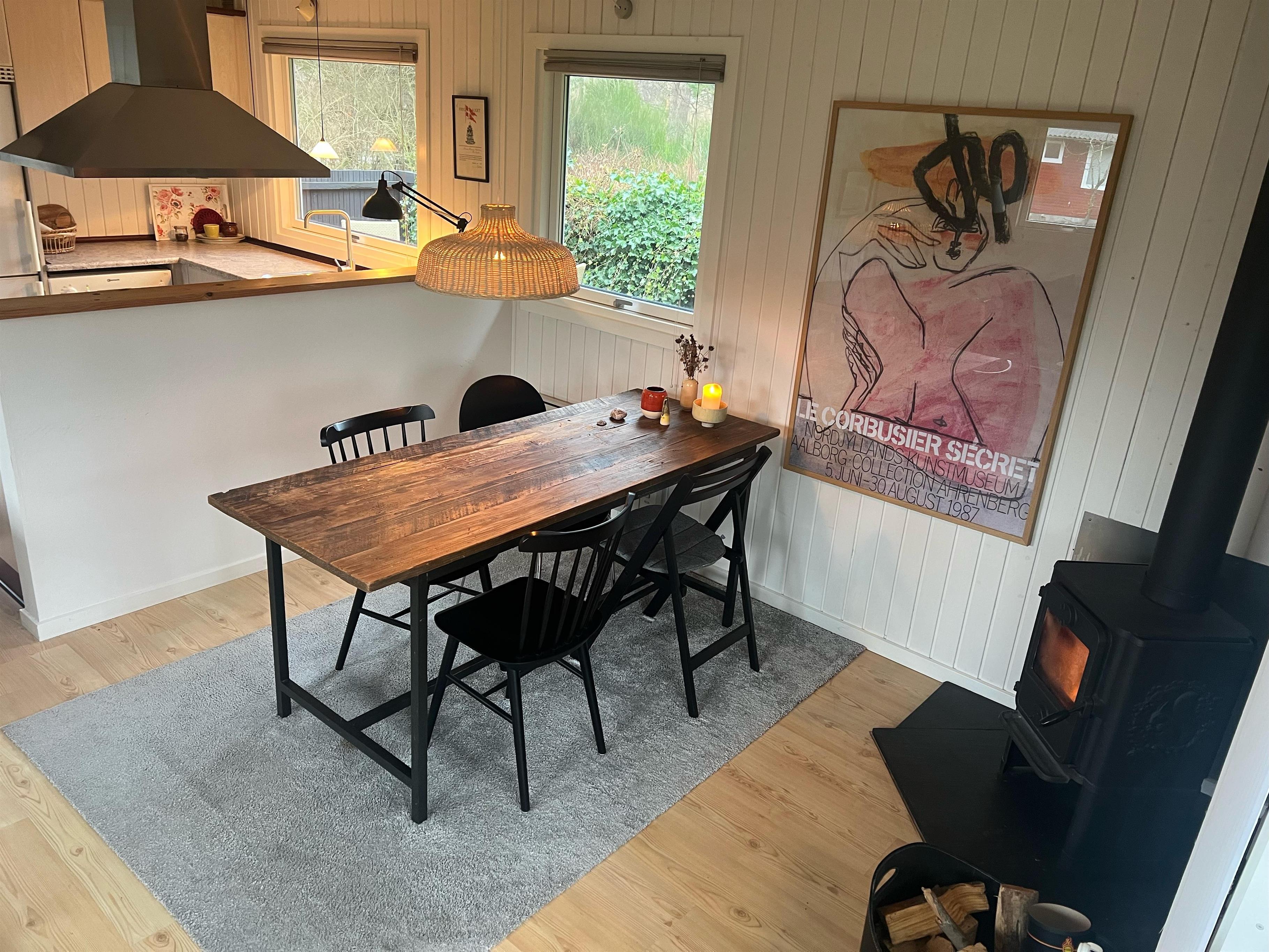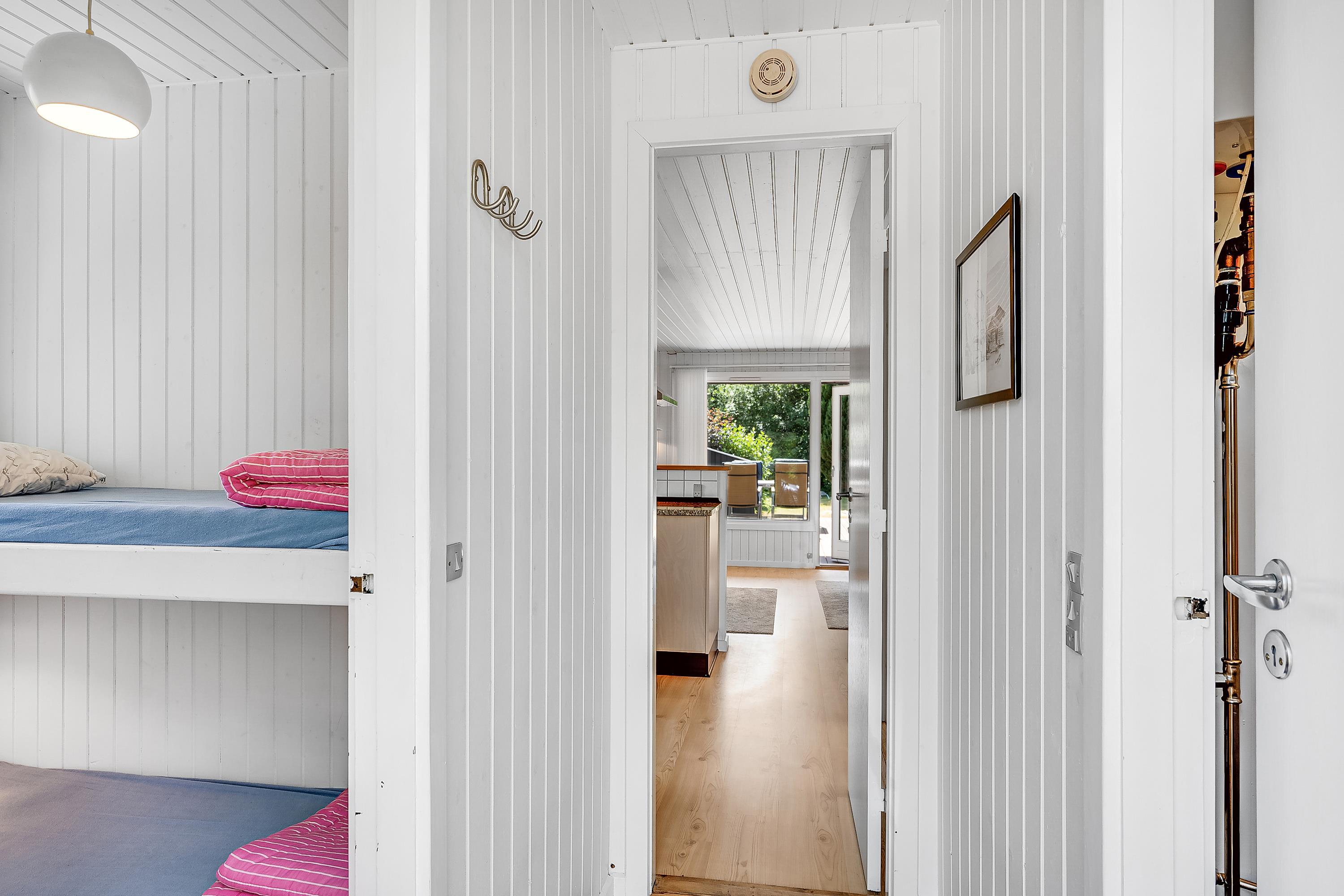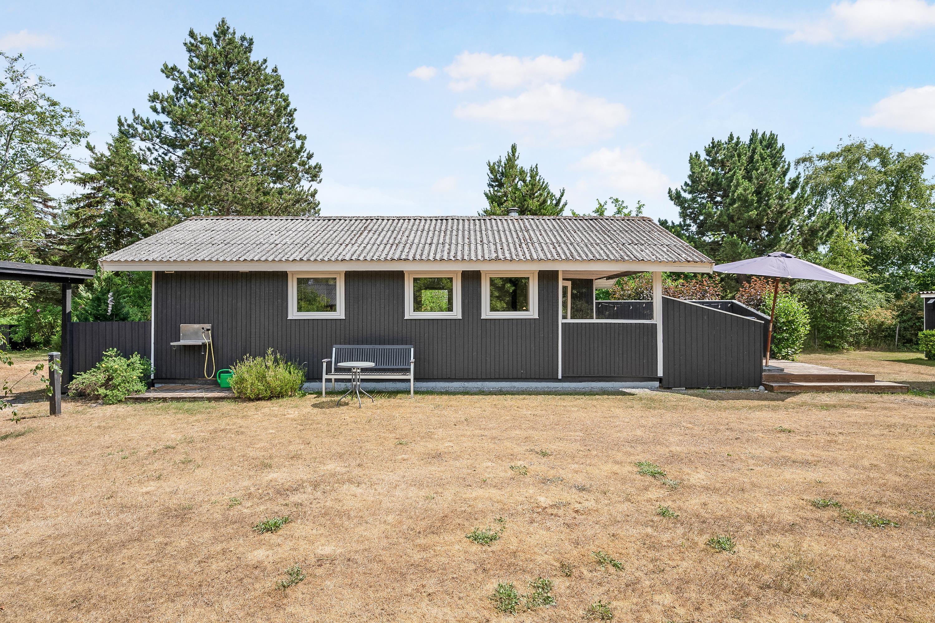 Allerede når man træder ind af døren fornemmer man den hyggelige sommerhusstemning man finder i huset. Her finder man en hyggelig og velmøbleret stue med brændeovn og med udgang til en rigtig skøn terrasse med havemøbler. I forbindelse med stuen finder man den hyggelige køkkenafdeling med b.la. opvaskemaskine. To mindre soveværelser, heraf er det ene med to enkeltsenge og det andet værelse er med køjeseng. Alle senge er 90 cm. Pænt badeværelse med bruseniche og gulvvarme. Der er internet i huset og TV foregår via chromecast. Det er tilladt at medbringe en hund. Huset er beliggende på en skøn grund, velegnet til leg og boldspil og udendørs hygge. Der er dejlige terrassearealer med havemøbler, liggestole, parasol og grill og så tager det blot 5 min til fods, at komme ned til stranden.