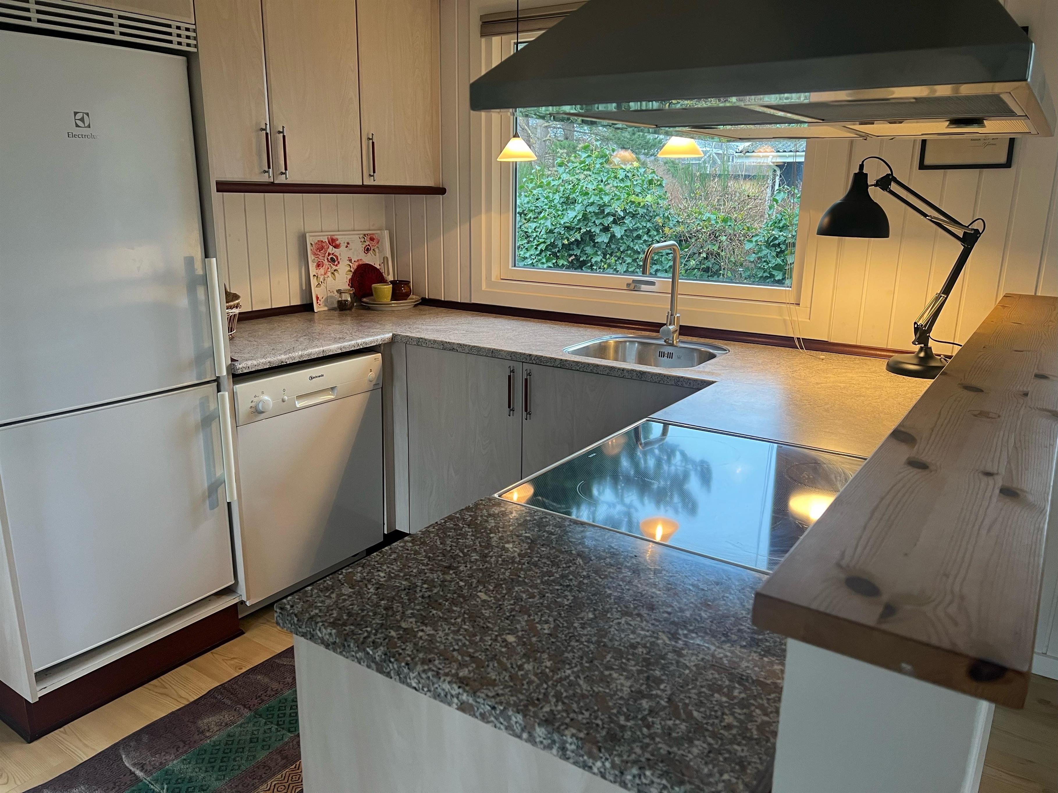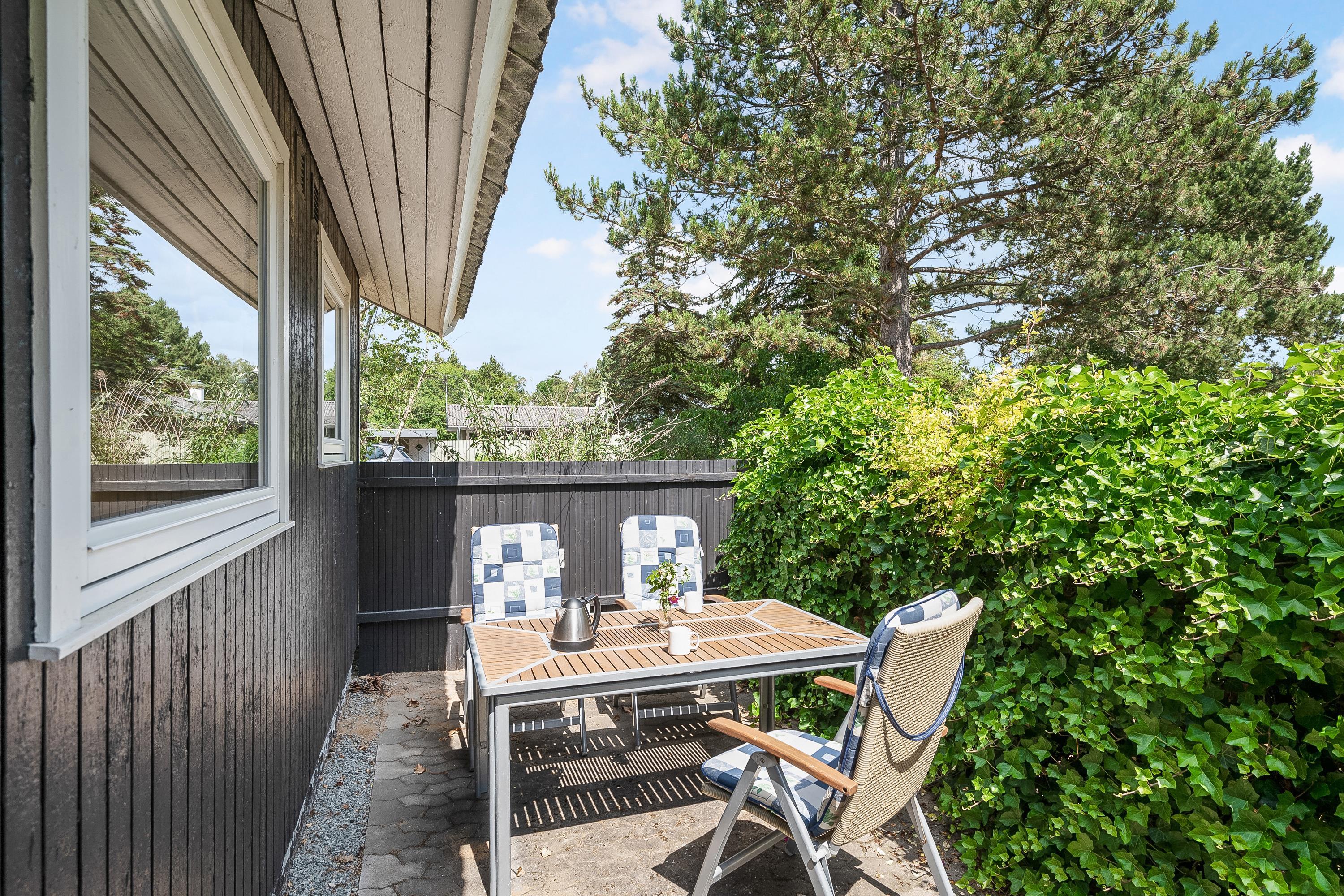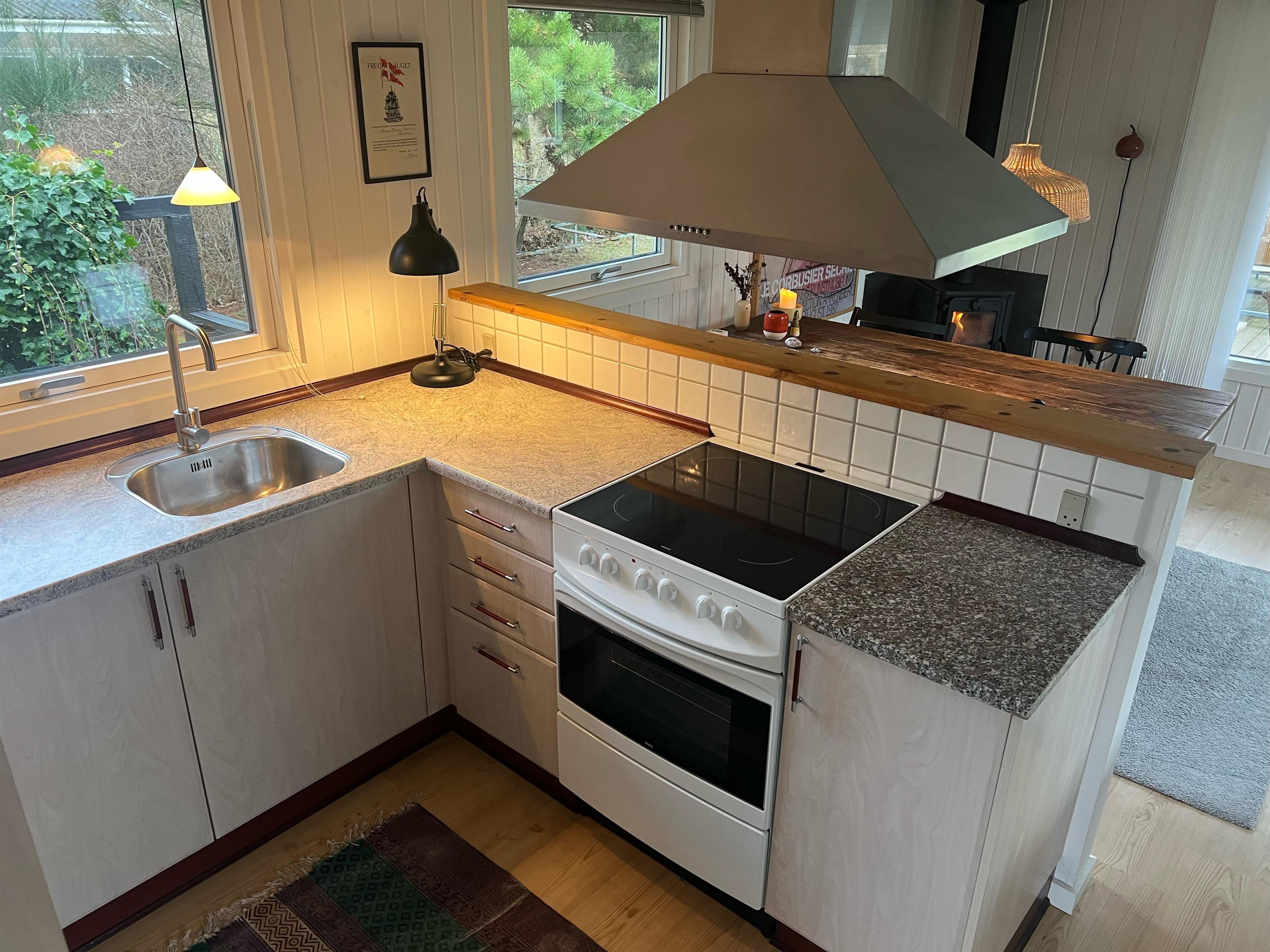 Allerede når man træder ind af døren fornemmer man den hyggelige sommerhusstemning man finder i huset. Her finder man en hyggelig og velmøbleret stue med brændeovn og med udgang til en rigtig skøn terrasse med havemøbler. I forbindelse med stuen finder man den hyggelige køkkenafdeling med b.la. opvaskemaskine. To mindre soveværelser, heraf er det ene med to enkeltsenge og det andet værelse er med køjeseng. Alle senge er 90 cm. Pænt badeværelse med bruseniche og gulvvarme. Der er internet i huset og TV foregår via chromecast. Det er tilladt at medbringe en hund. Huset er beliggende på en skøn grund, velegnet til leg og boldspil og udendørs hygge. Der er dejlige terrassearealer med havemøbler, liggestole, parasol og grill og så tager det blot 5 min til fods, at komme ned til stranden.
