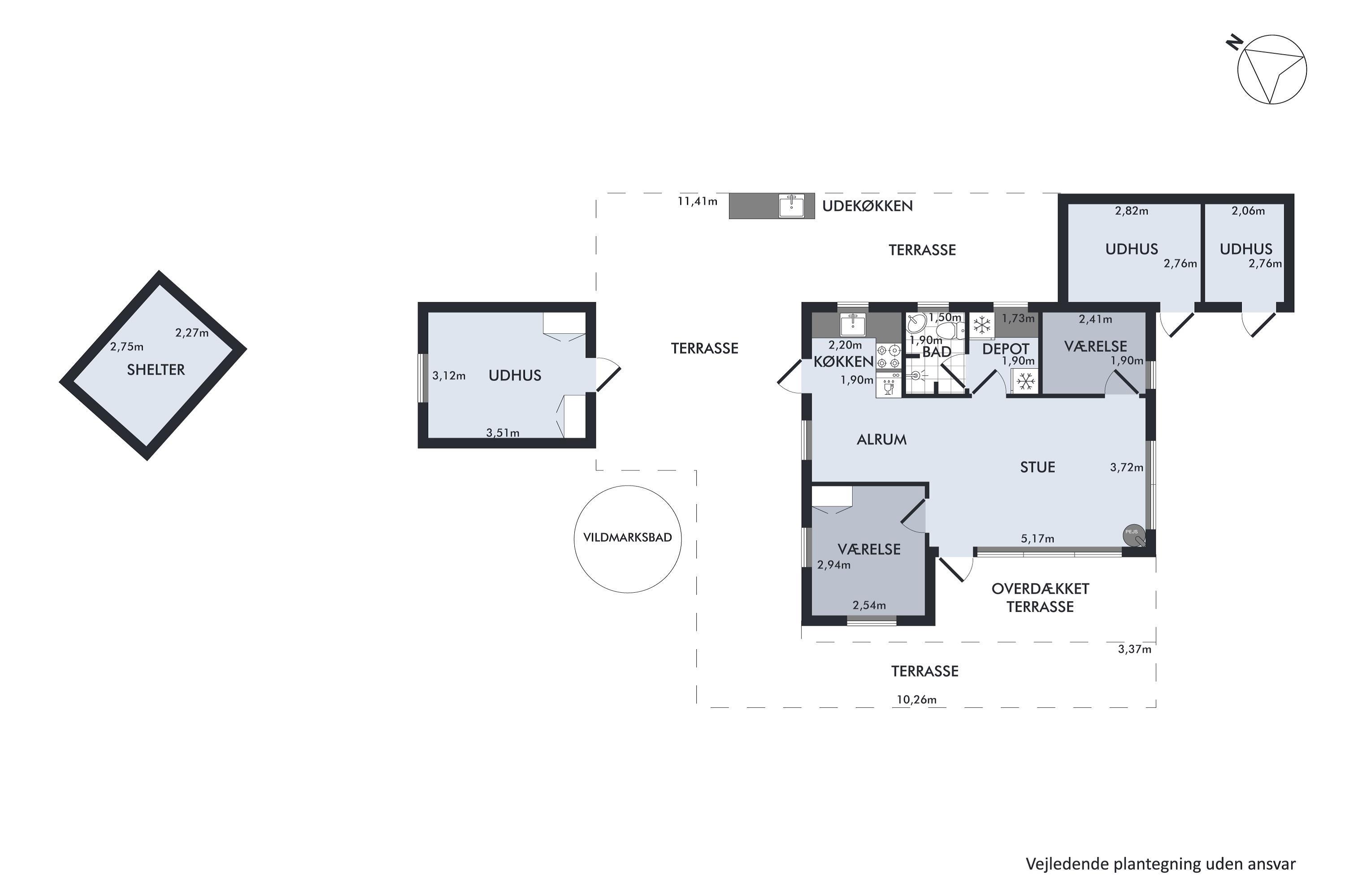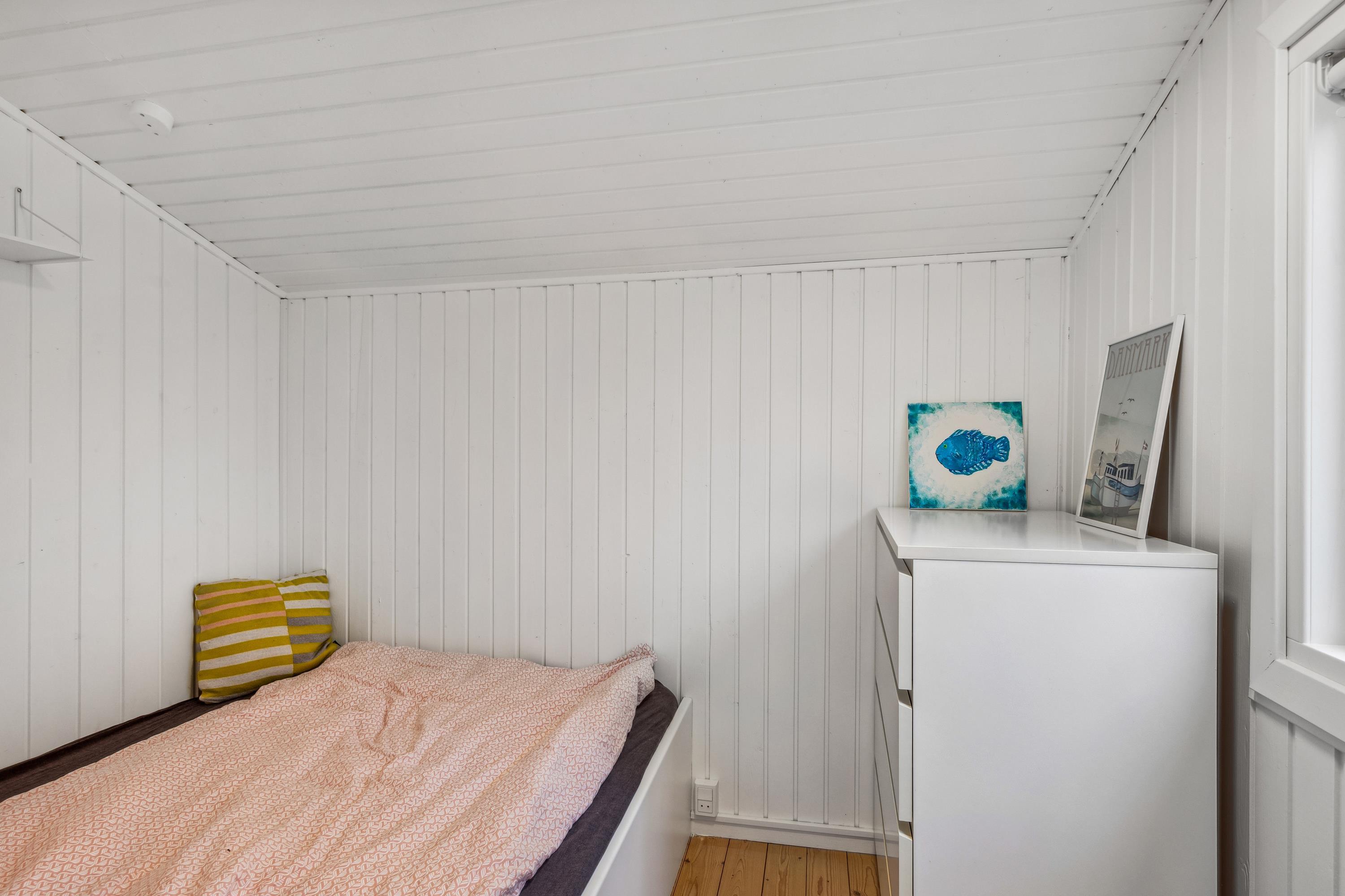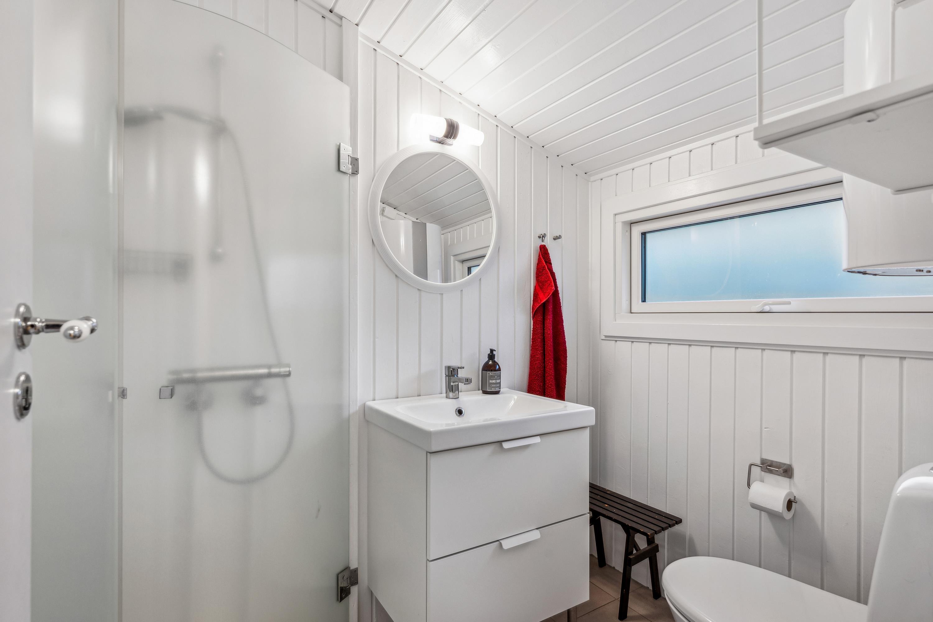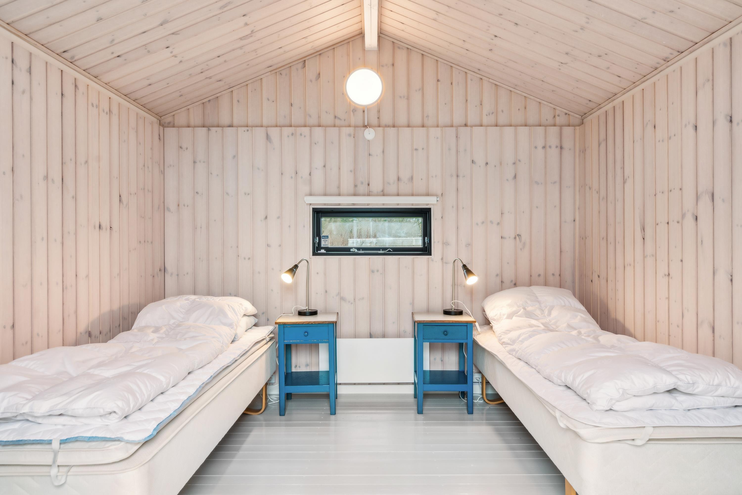 Blot 5 min gang fra stranden finder man dette ældre, men hyggelige feriehus. Huset indeholder en lys stue med brændeovn og varmepumpe samt et hyggeligt spisehjørne. Fra stuen er der udgang til en overdækket terrasse. Mindre, men funktionelt køkken med b.la. opvaskemaskine. Fra køkkenet er der udgang til et stort åbent terrasseareal med havemøbler og grill og udekøkken. Pænt badeværelse med bruseniche. Der er internet i huset og TV foregår via chromecast/streaming. Husets sovepladser finder man i to soveværelser samt i et nyere anneks, hvor man finder to enkeltsenge. På grunden findes der et hyggeligt shelter samt et vildmarksbad, hvor man kan nyde en lun sommeraften og lytte til havets brusen.