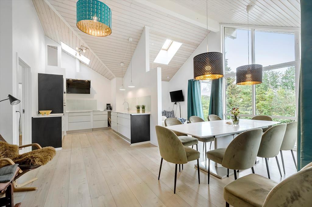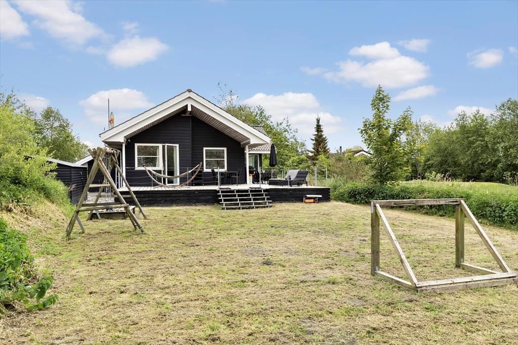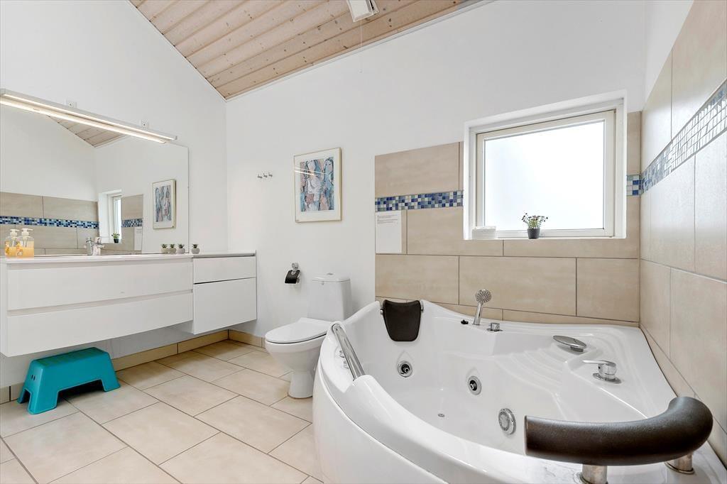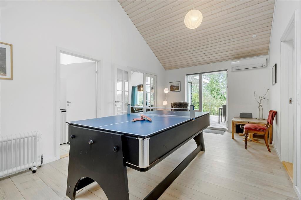 Tæt på rigtig god strand, finder du dette store sommerhus med mange aktivitetsmuligheder. Huset er indrettet med aktivitetsrum hvor du kan spille billard med vennerne. Så er der åbent køkken og stue, og naturligvis spisestue, så her kan alle deltage lige meget om der skal laves mad eller spilles spil. Huset har en dejlig terrasse, som ligger lige ud til åbne marker, så der er altid spændende at følger med i naturens gang via terrassen eller hvis vejret er til indendørs ophold, så kan du sidde og se ud af de store vinduer. Der er 5 værelser og to store badeværelser. Det ene badeværelse er med spa bad, så her kan der hygges videre om aftenen.