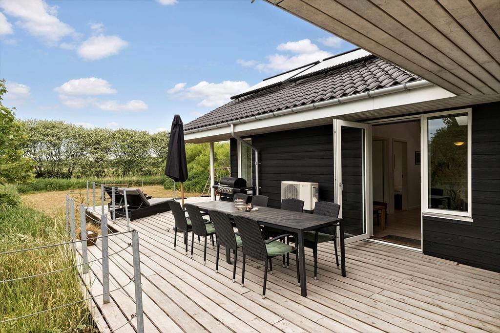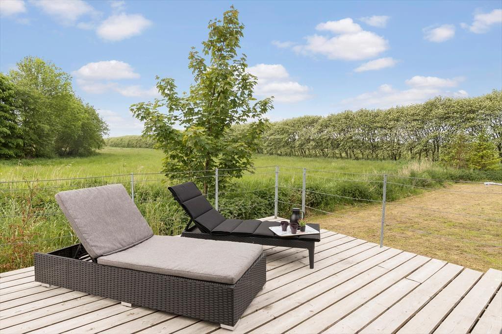 På terrassen kan du også tilberede aftensmaden på grillen. Er du morgenmenneske kan du være heldig at se nogle af de vilde dyr som kommer forbi på marken og gennem husets have. Det kan være dådyr, harer eller andre spændende dyr. Fra huset er der ca. 10 min gang til stranden, hvor børnene kan samle muslingeskaller eller slå smut med stenene.