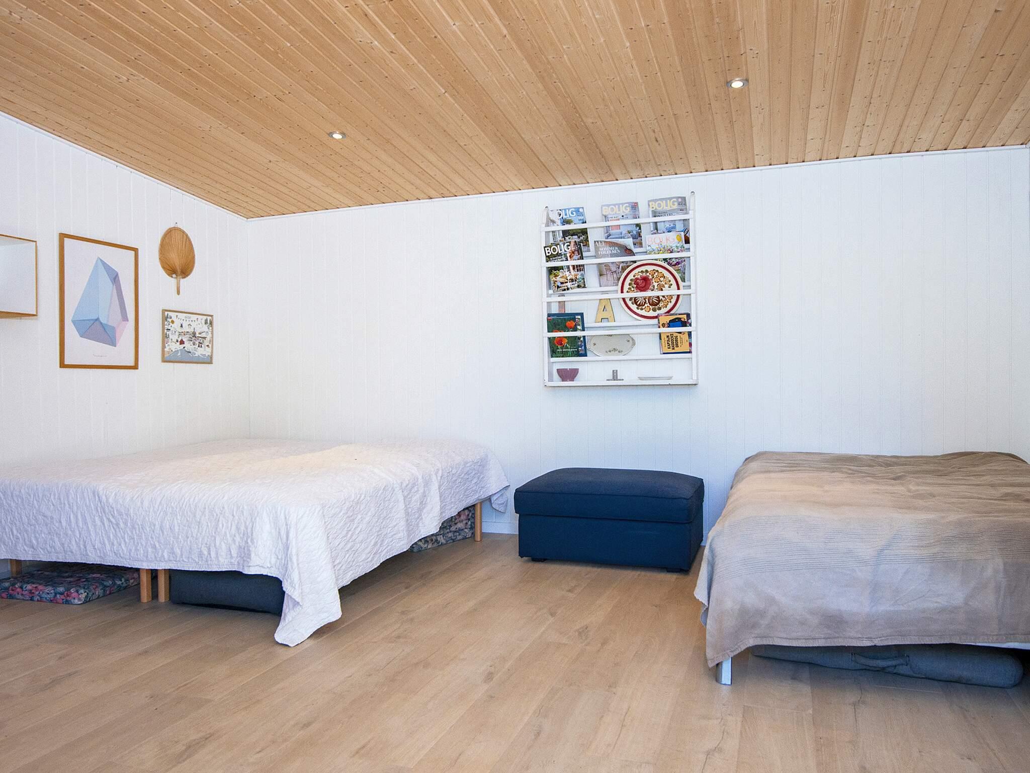 Stuen giver et varmt og afslappende omdrejningspunkt for familielivet, med direkte adgang til en charmerende hems (oplægninger) gemt under taget. Denne hems er udstyret med et tv og en spillekonsol, hvilket gør det til et yndet sted for både børn og voksne. Lige ved siden af ??hovedhuset tilbyder et separat anneks ekstra fleksibilitet til større grupper eller familier. Den er indrettet med to dobbelte sovesofaer og har også et ekstra køleskab med fryser, hvilket gør det særligt praktisk til længere ophold.