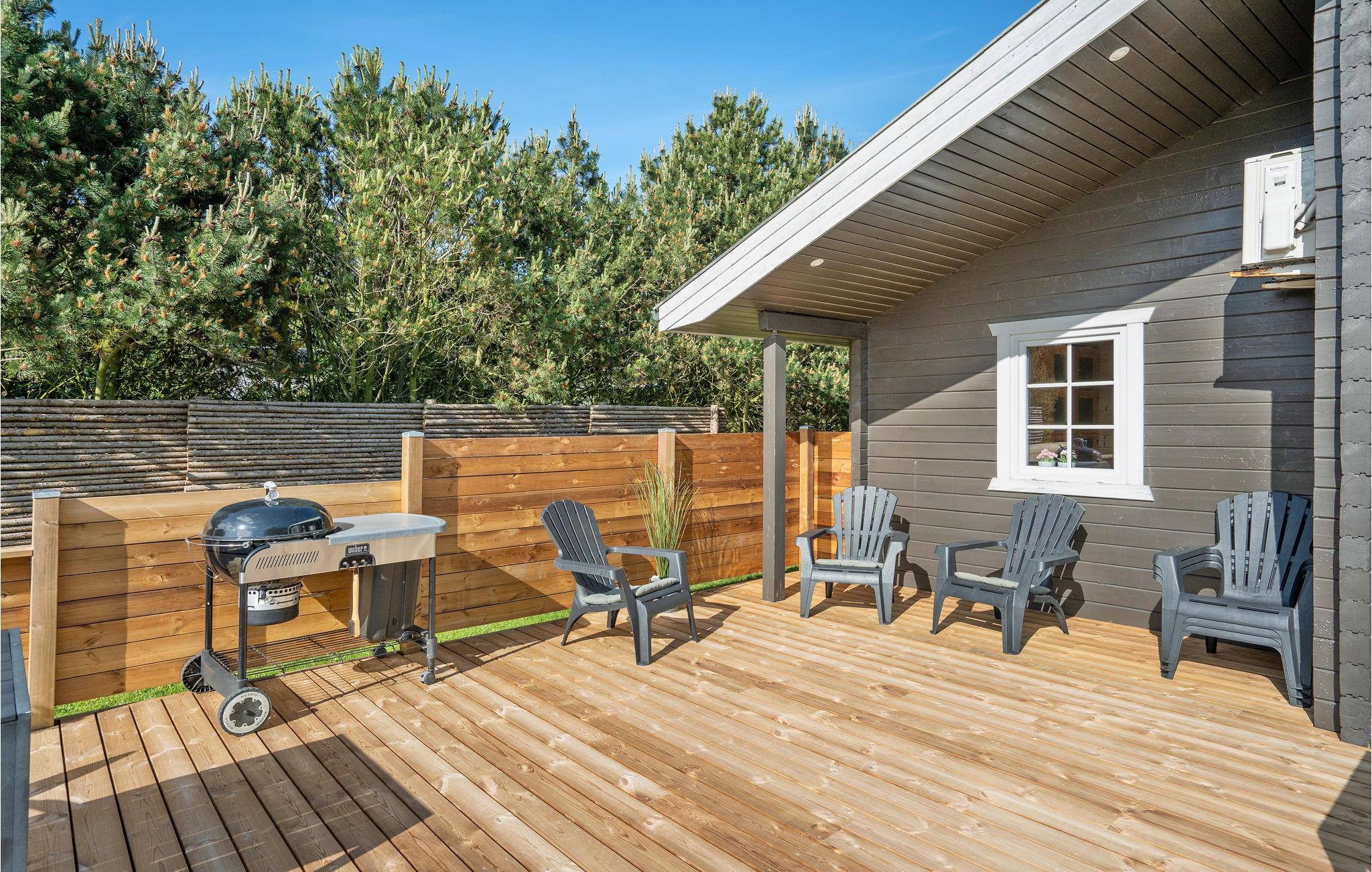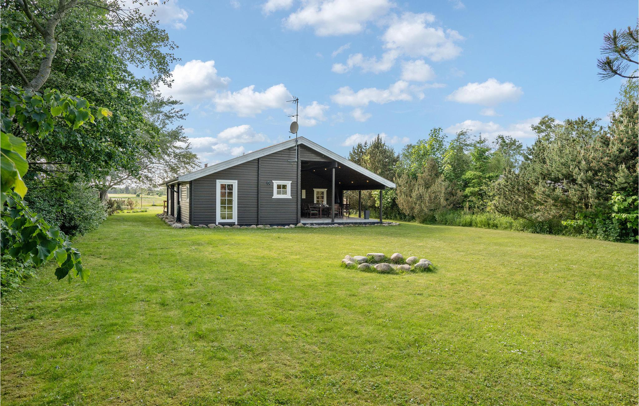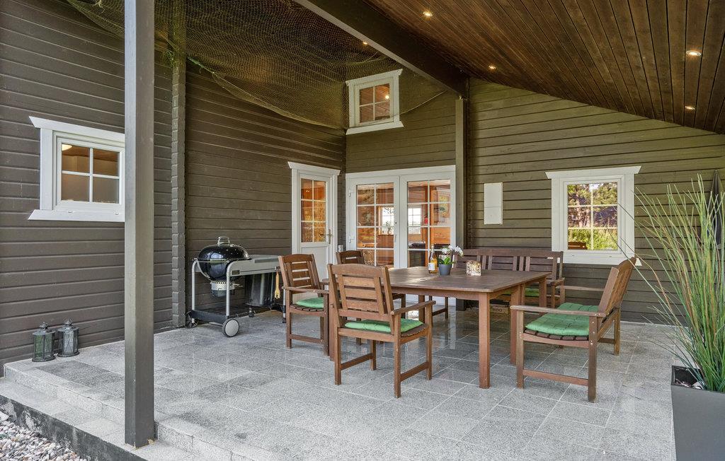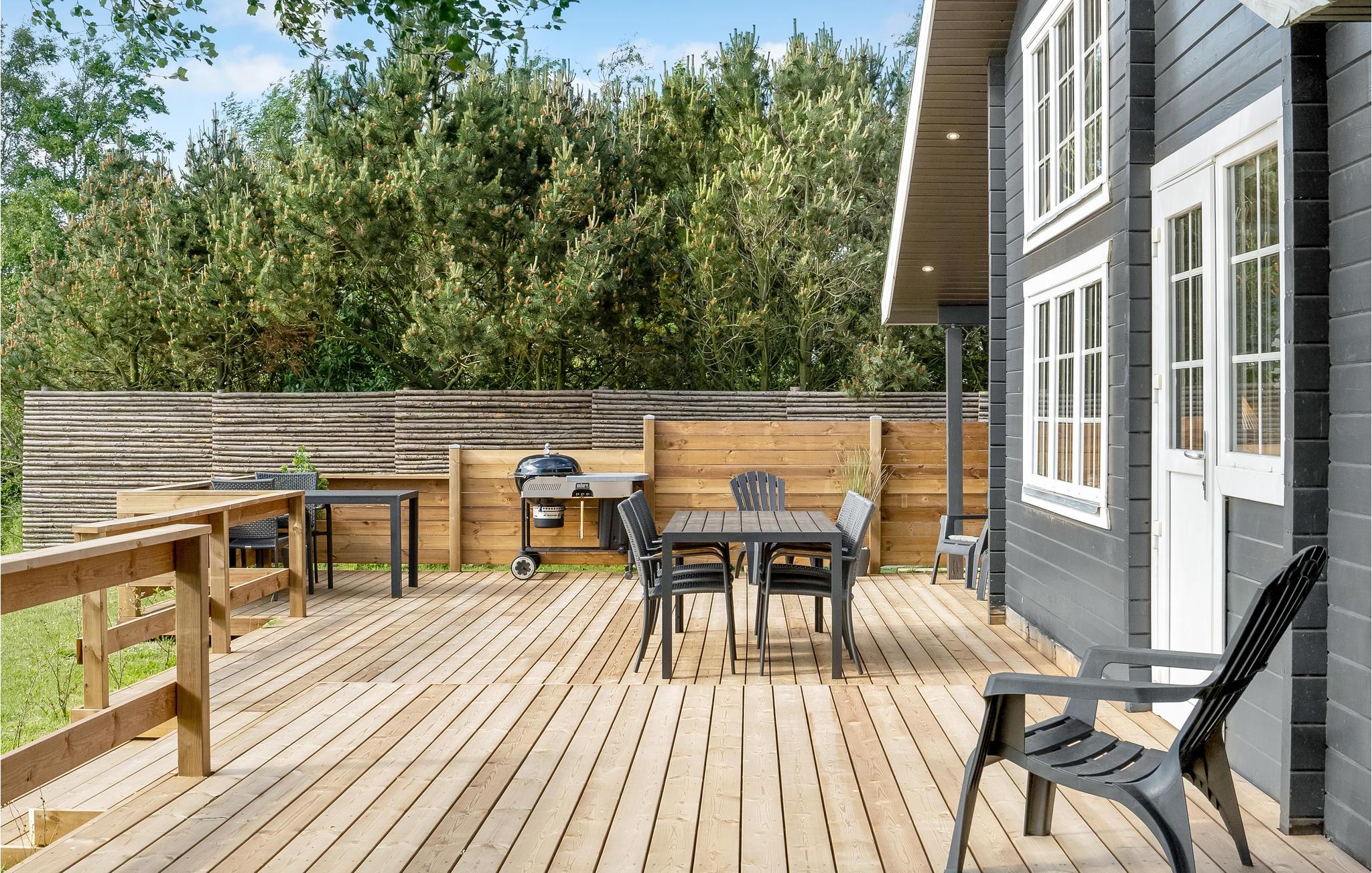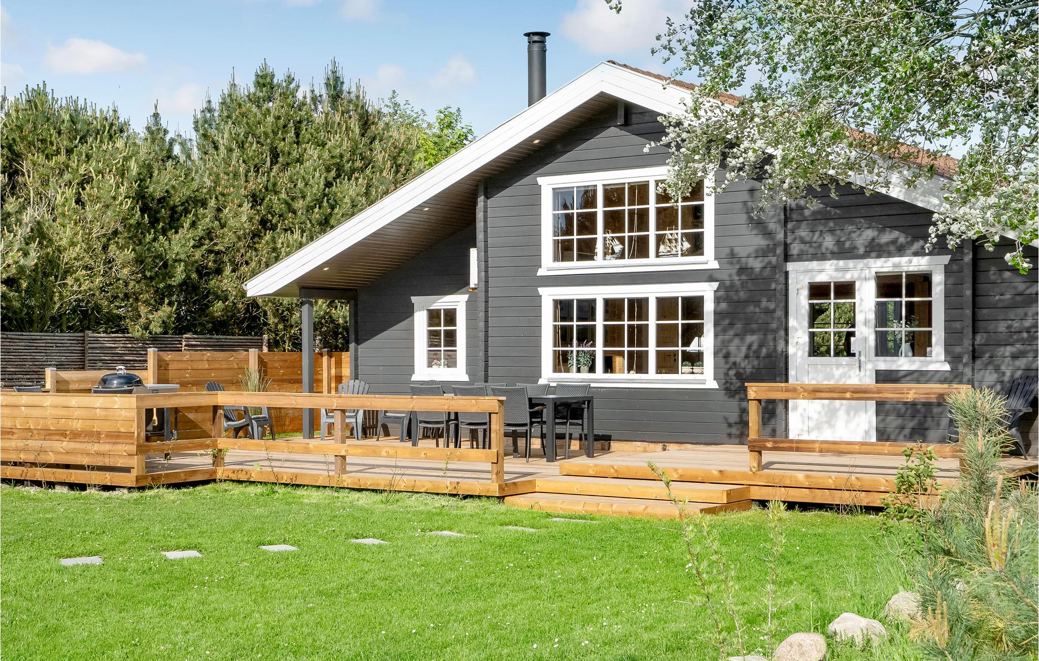 Rummeligt feriehus nær Elsegårde Strand med moderne faciliteter og stor overdækket terrasse.