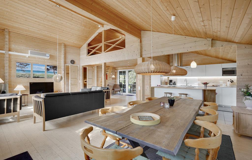 Skønt feriehus, som på alle årstider kan danne grundlag for et dejligt ferieophold. Huset er spændende indrettet og meget rummeligt, så to familier kan fint holde ferie her sammen. Der er bl.a. tre gode soverum og et åbent køkken kombineret med stuen og herfra er der opgang til en stor hems med ståhøjde. Alt er udført i de bedste kvalitetsmaterialer.
