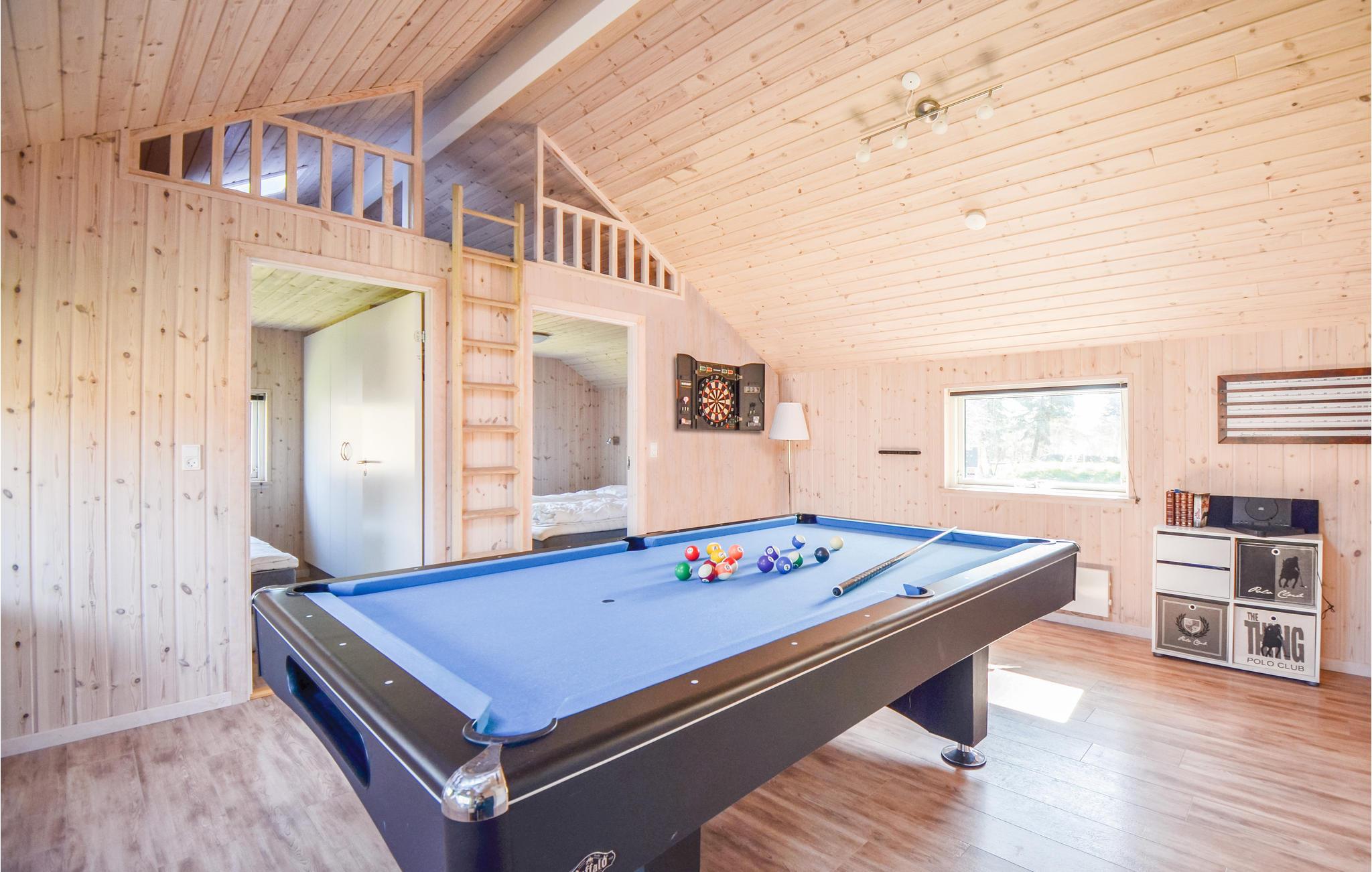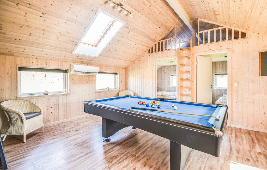 Dette feriehus er beliggende ved en af de mest populære strande i Ebeltoft området. Huset er topmoderne og super isoleret, her kan I holde ferie uanset årstid. Huset er flot og smagfuldt møbleret samt velindrettet til såvel en som flere familier. Samlingspunktet vil sikkert blive det store aktivitetsrum med bl.a. bordtennis og poolbord. Udendørs er der forskellige aktivetsmuligheder for børn samt et herligt vildmarksbad, der indbyder til rendyrket ferieafslapning.