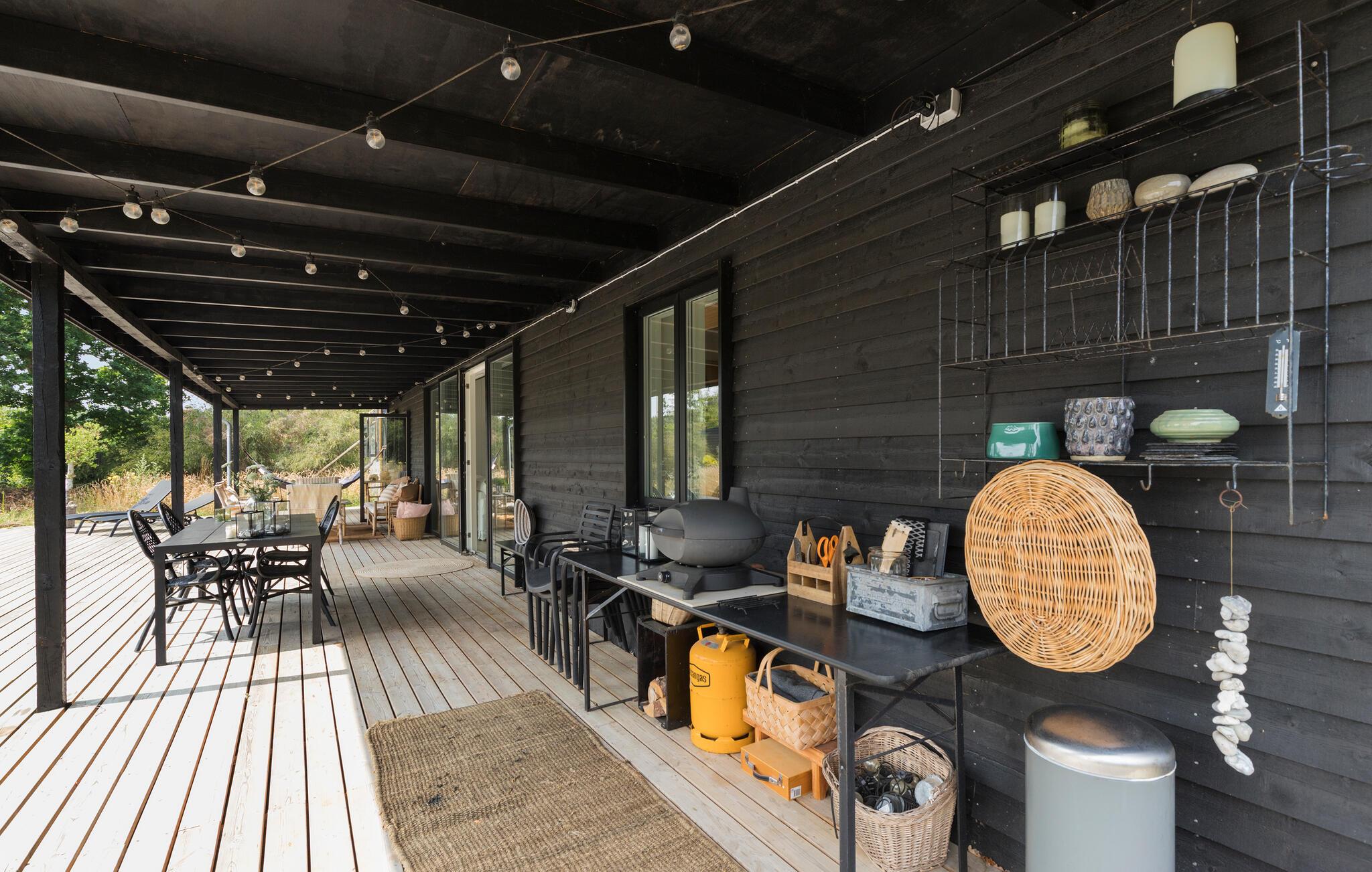 Begynd dagene med en kop kaffe på den solrige terrasse og lyt til naturen. Græsplænen får lov til at gro her, så I er omgivet af duftende græsser og blomster. Tilbring afslappende timer med en bog i hængekøjen og afslut dagen med en hyggelig grillmiddag.