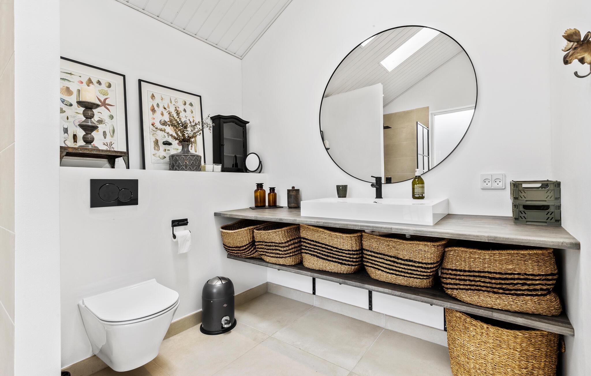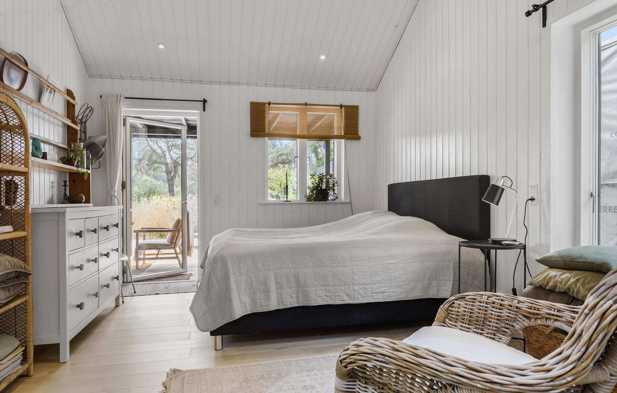 Dette velindrettede hus er lyst og åbent indrettet. Der er lagt vægt på kvalitetsløsninger, og boligen emmer af ro og feriestemning. De store vinduer har udsigt over den grønne have. Læn jer tilbage i de komfortable sofaer, mens I snakker om dagen, der er gået eller lytter til musik. Det moderne køkken lægger op til hyggelige madlavningsseancer, inden I dækker op til den store feriemiddag.