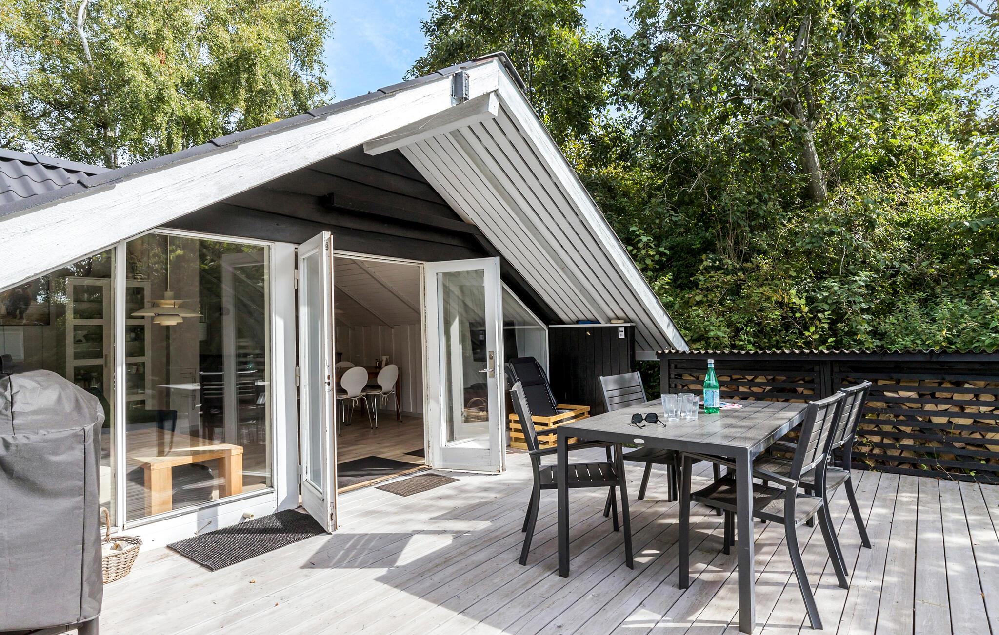 I sommermånederne kan I begynde dagen med en friskbrygget morgenkaffe på den store træterrasse. Nyd solen, freden og roen i løbet af dagen og sæt jer godt til rette i vildmarksbadet under stjernerne om aftenen. For børnene er der masser af plads at boltre sig på i haven, mens I daser i havemøblerne eller hængekøjen.