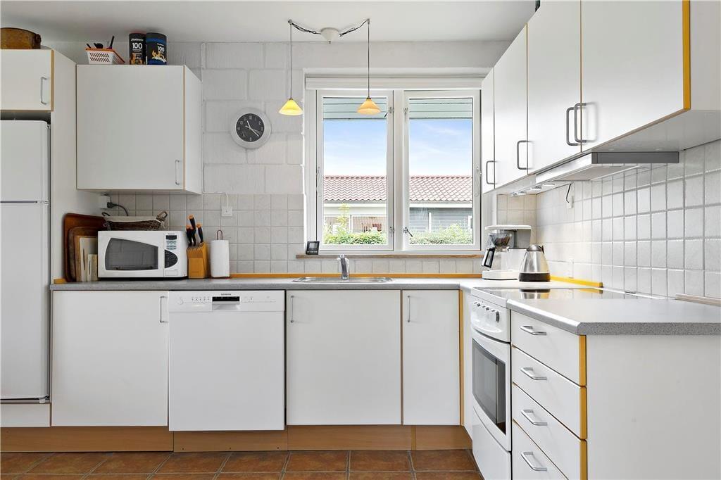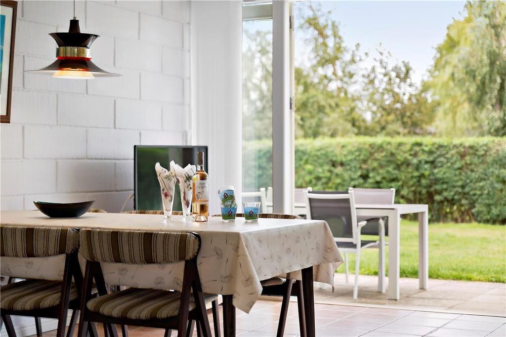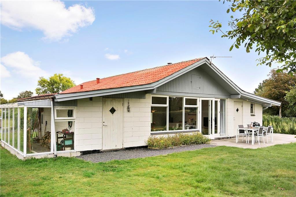 Feriehuset er beliggende på en 600 m2 grund med dejlig åben terrasse og stor græsplæne. Ved sommerhuset er der havemøbler og grill.