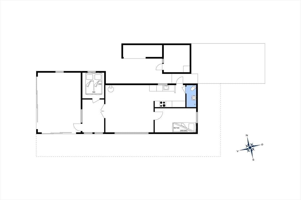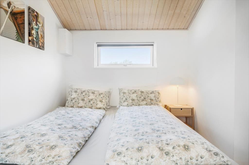 Indendørs: Velholdt hus med god indretning. Komb. opholds-/spisestue med adgang til stor udestue, hvorfra der er udgang til hyggelig have. Åbent køkken med køleskab,fryser , komfur med ovn, opvaskemaskine. 2 soveværelser, 1 med 1 dobbeltseng, 1 med 1½ køjeseng. Badeværelse med bruseniche, håndvask, toilet. Radiator på badeværelse. Vaskemaskine og tørretumbler i udhus.